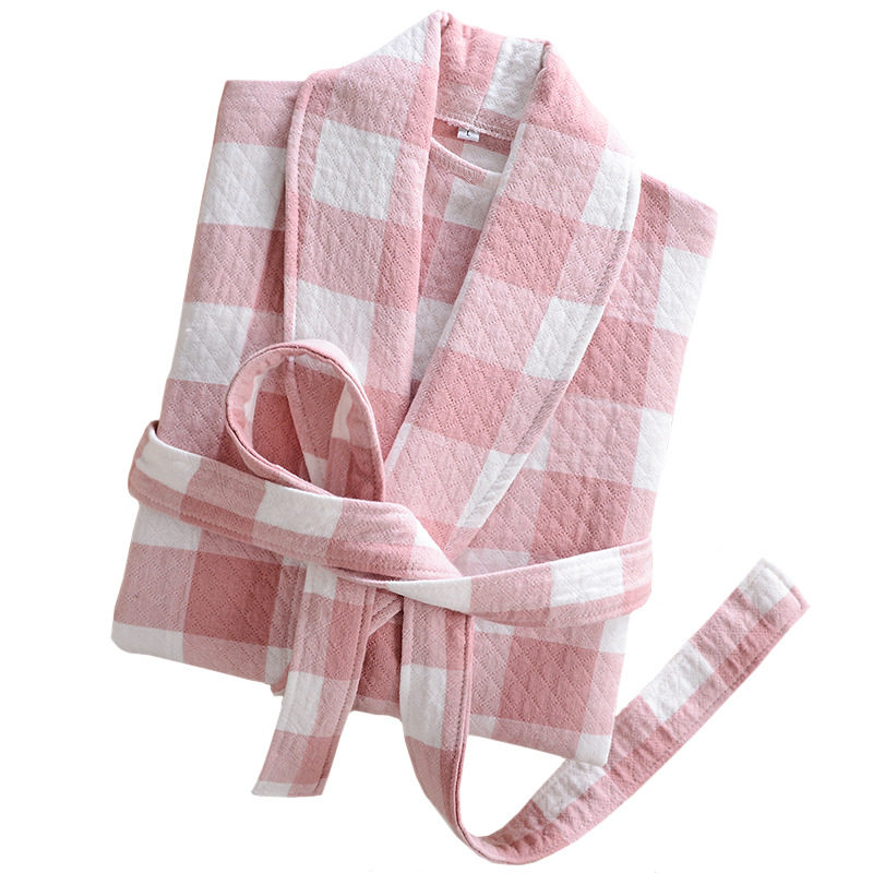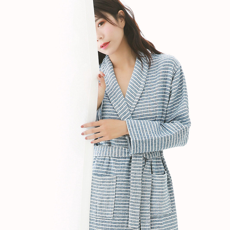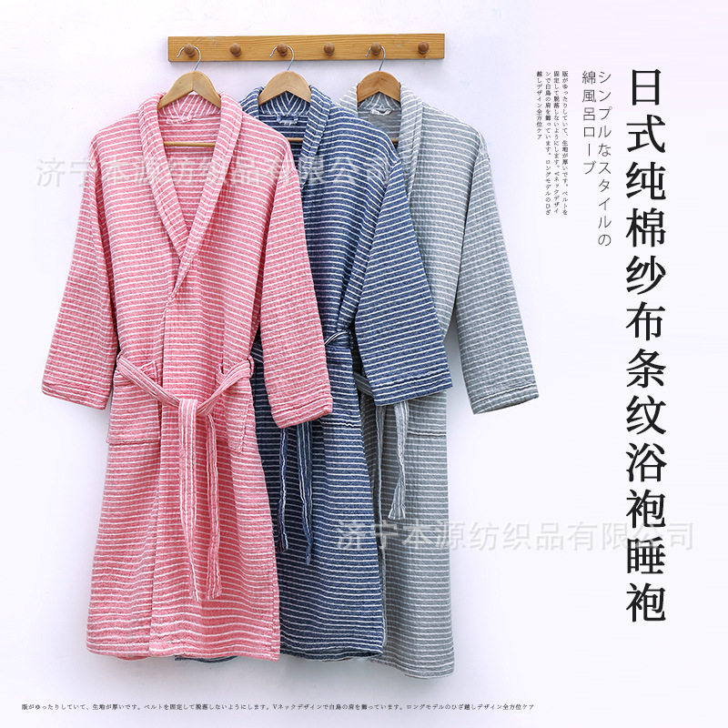 2020 spring and summer pure cotton bathrobe three-layer gauze plaid striped bathrobe Japanese-style good couple pajamas absorbent