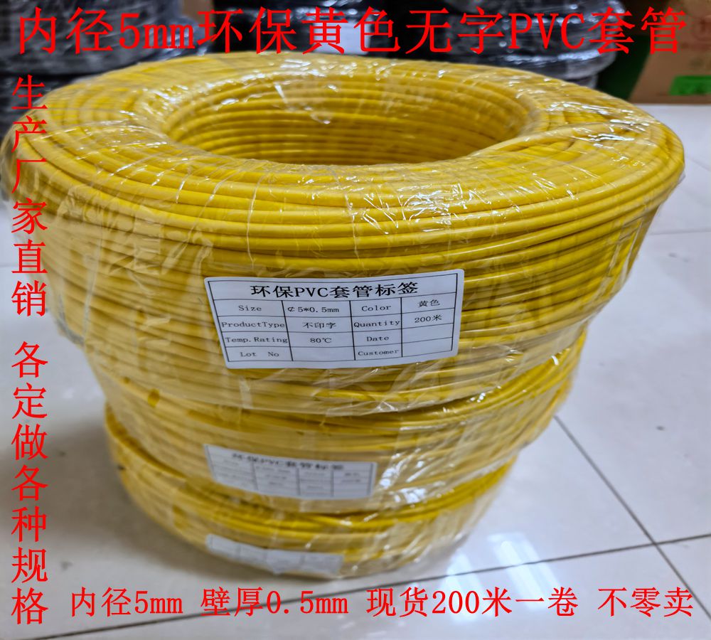 0 5 thick diameter 5mm yellow eco - friendly PVC insulation sleeve electric car moisture wire beam flame retardant sheath tube