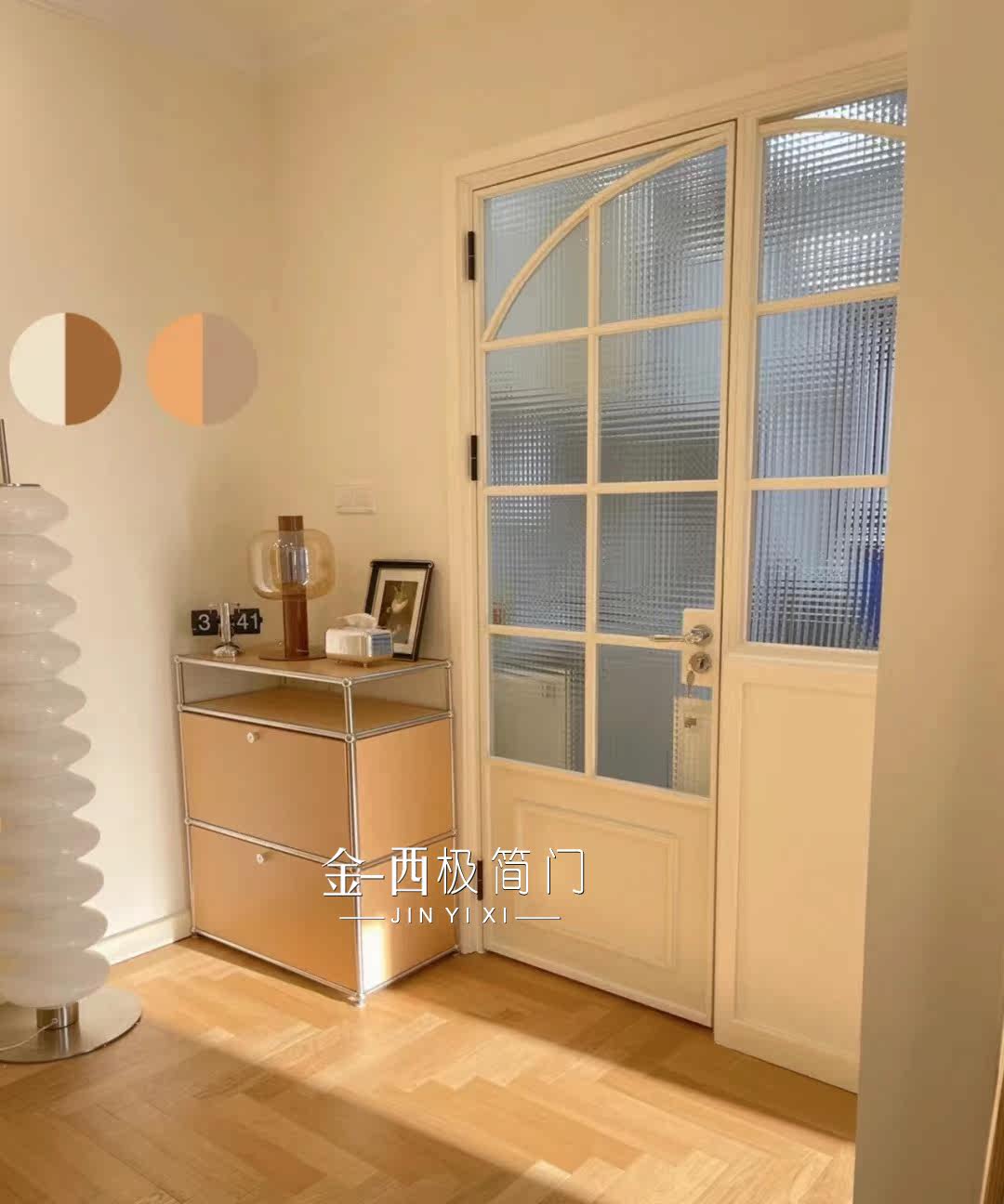 Jinyixi minimalist door French white kitchen glass door retro lattice aluminum alloy swing door partition with door