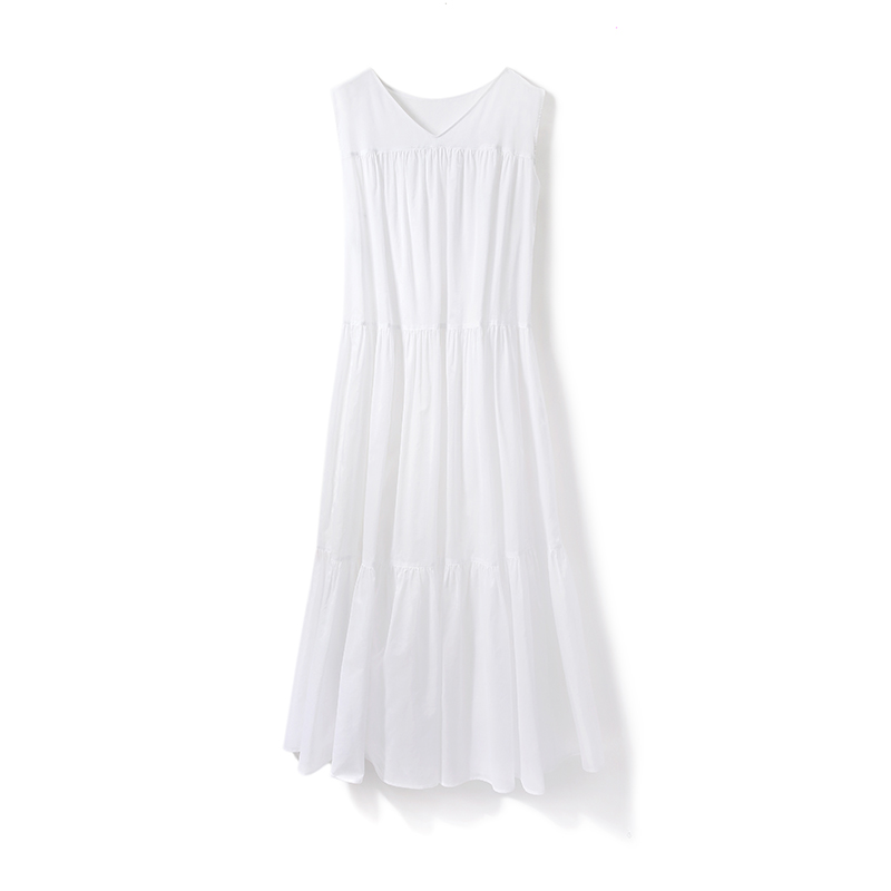 (QZ0425781) Japanese material strong twist cotton V neckline collar 2 wearing fine pleats splicing the fairy-length dress