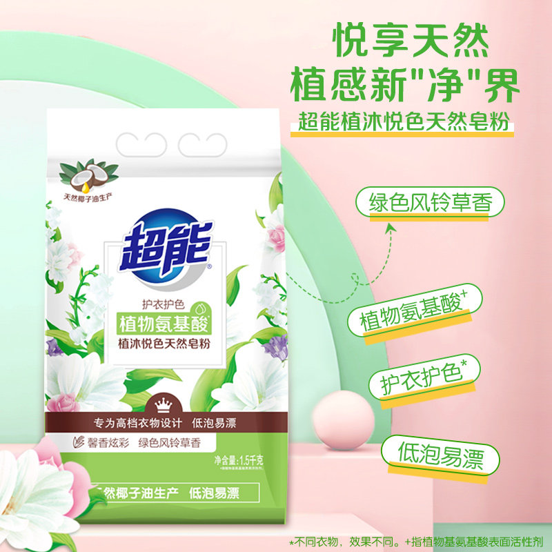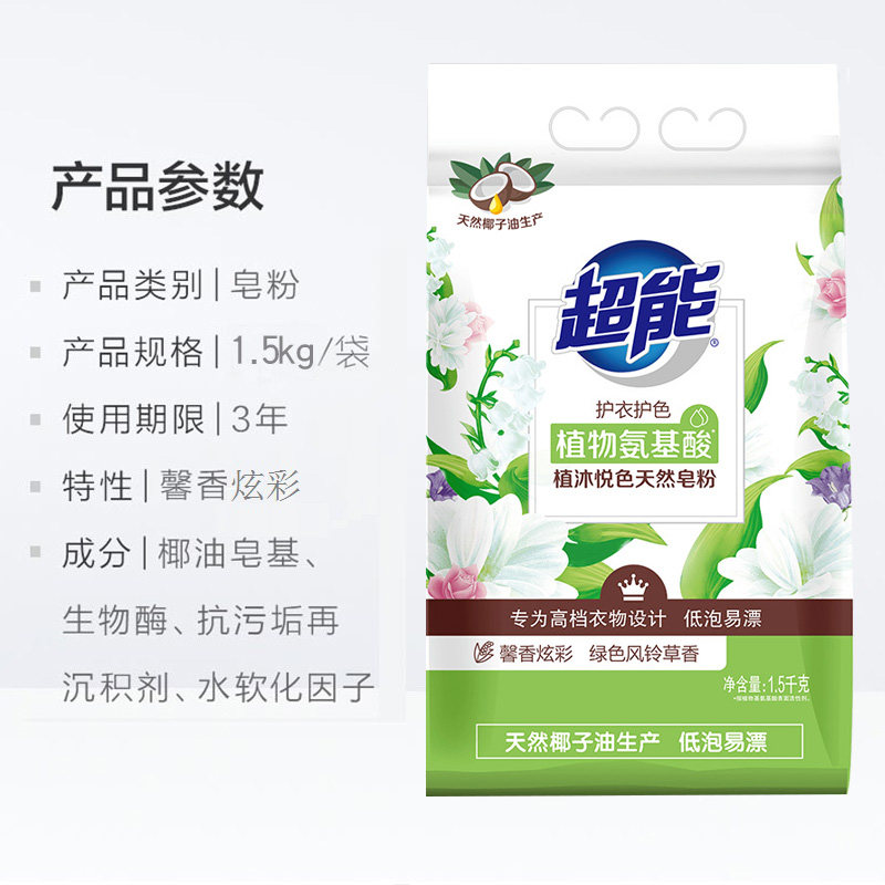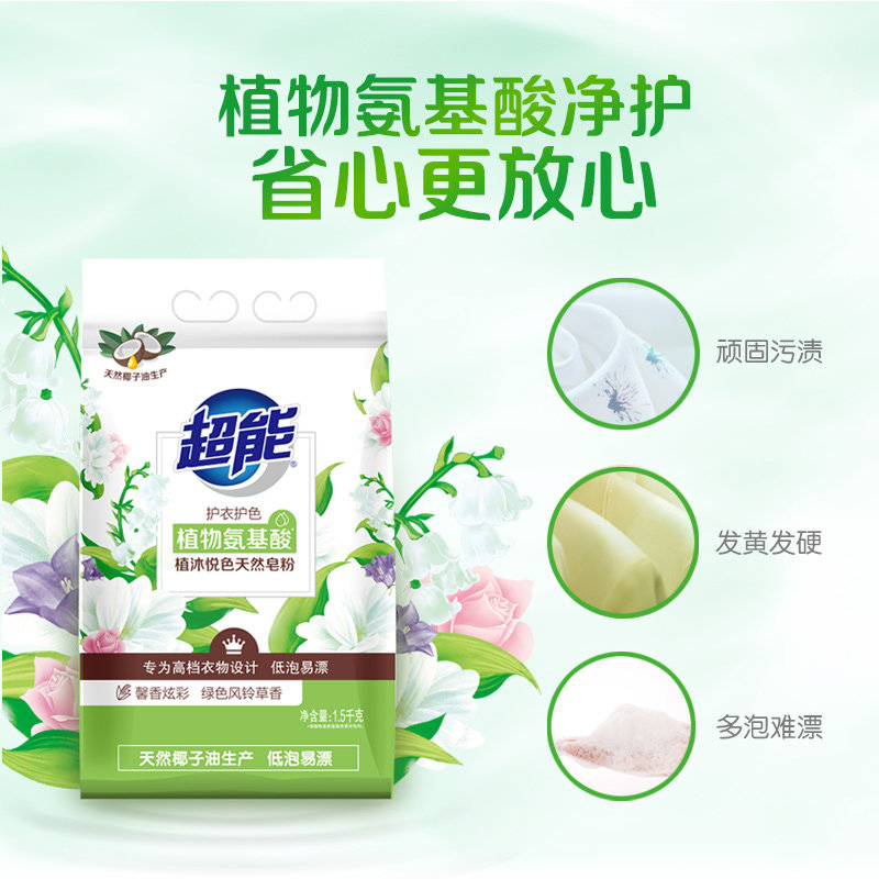 Ultra-energy natural soap powder (dazzling carnation) 1 5kg * 1 bag of low bubbles easily bleached to stain and protect the color