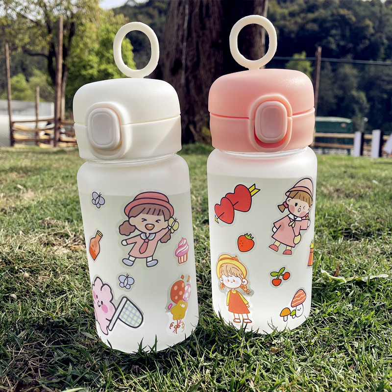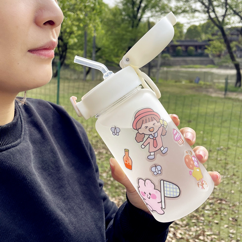 Portable anti-drop bouncing straw cup plastic water cup female student Korean version cute ins with cover can be portable tea cup