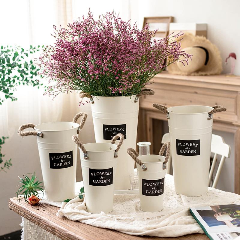 Retro blue high 25cm white hemp rope high 20cm black no handle flower barrel set 20cm wood handle sea blue high 30cm Jun green horseshoe printed barrel high 25cm retro white