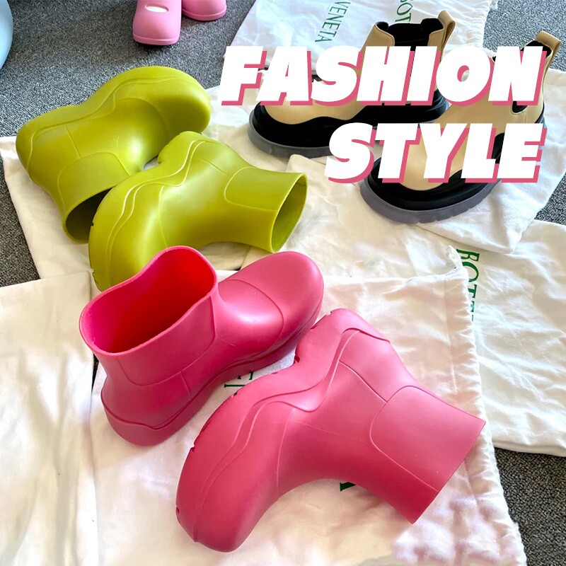 Fashion Rain Shoes Women Summer Thick Bottom Rubber Shoes Waterproof Non-slip Net Red Water Shoes Water Boots Light Rain Boots Kitchen Shoes Outwear