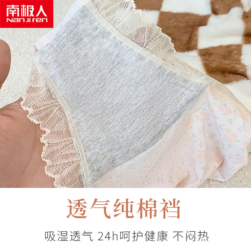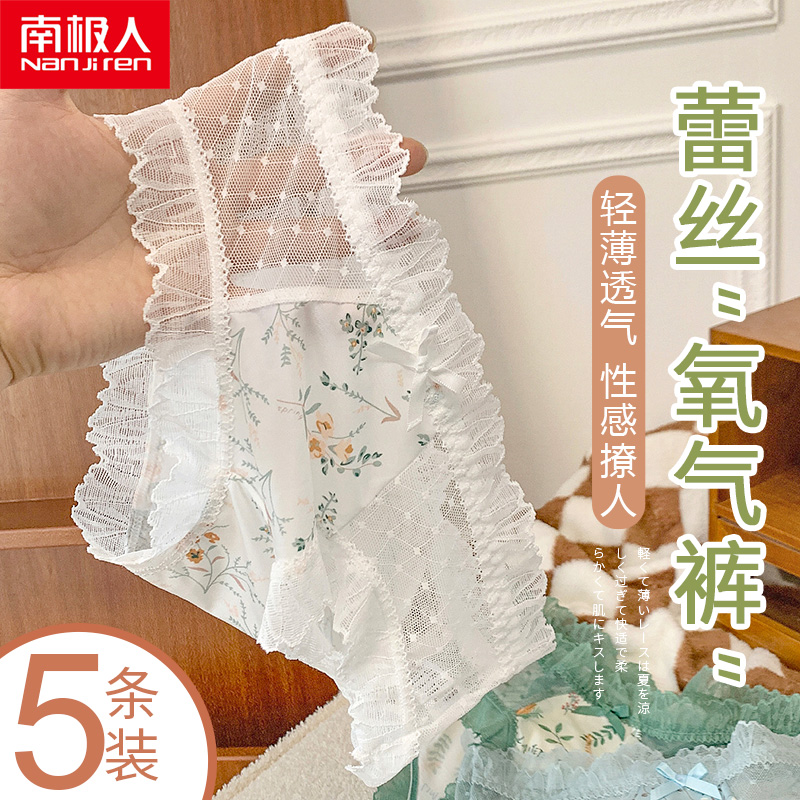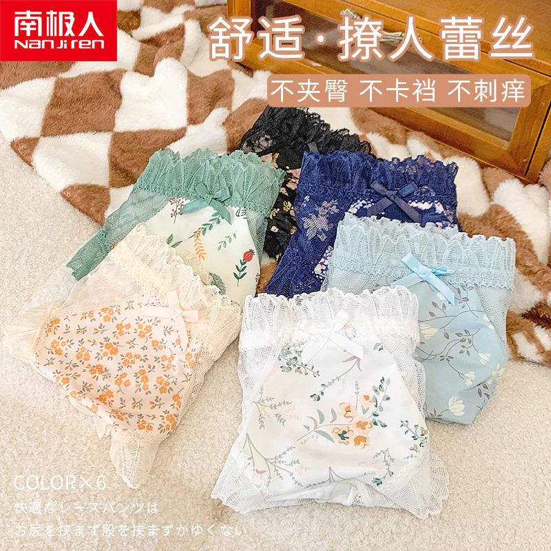 South Pole No Scratches Sexy Lace Pants Women Antibacterial Pure Cotton Crotch Pure Desire Mid Waist Breathable Thin Lady Triangle Pants
