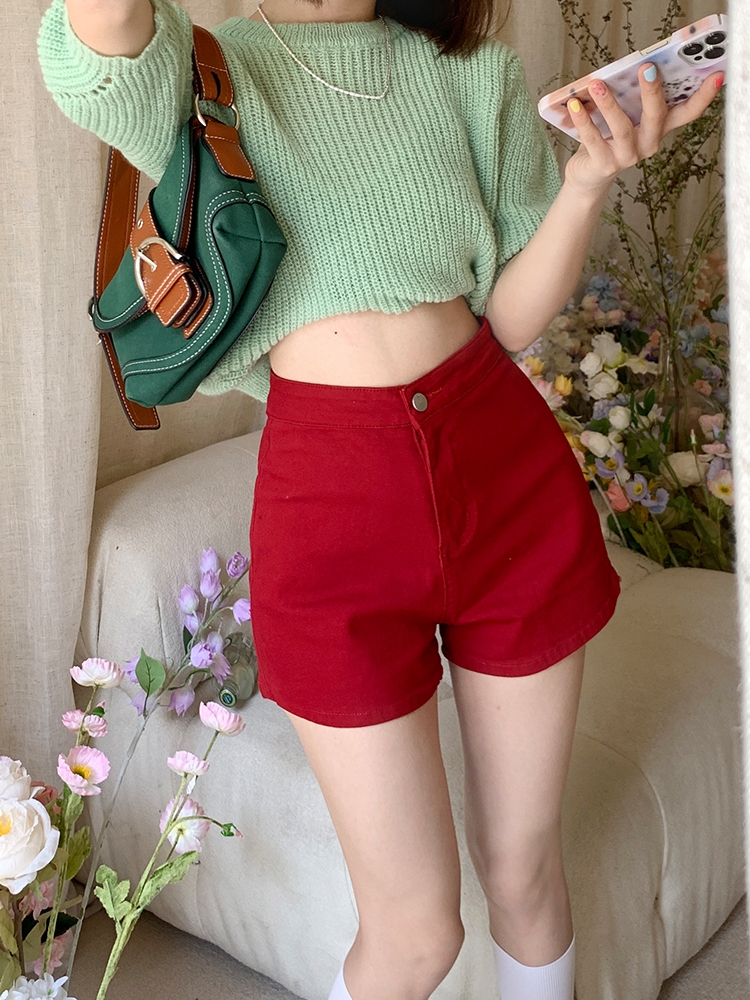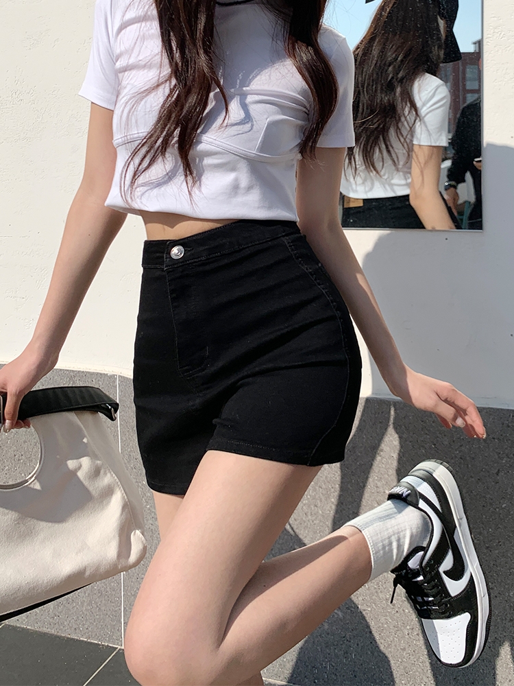 RJVO high waist denim shorts women 2022 summer new casual super elastic hot pants comfortable hot girl tight and thin