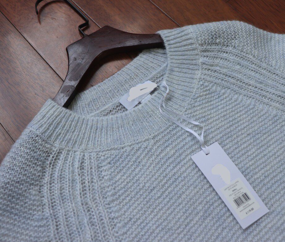 White Label with alpaca wool rounded collar gentle light blue lace with wide cufflink minimalist loose sweater knitted sweatshirt