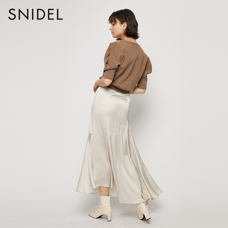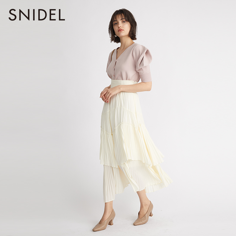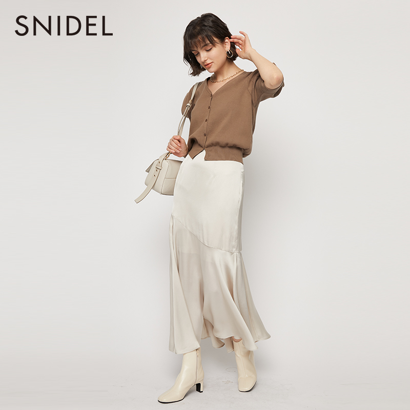 SNIDEL2022 spring summer new products sweet and beautiful ladies' pure colour V collar foam sleeves cotton knit cardiovershirt SWNT221097