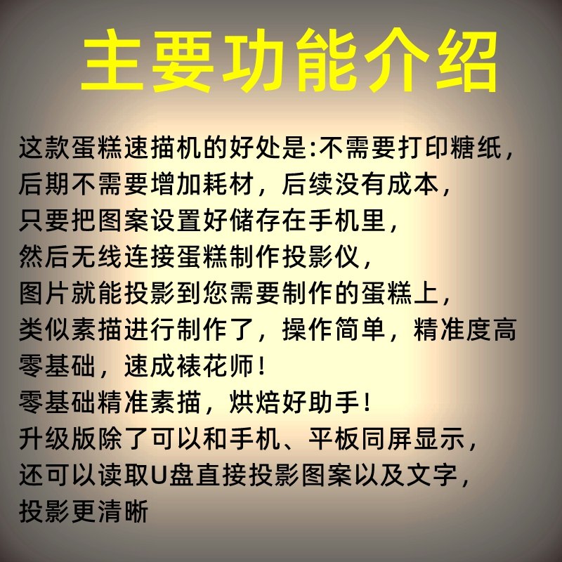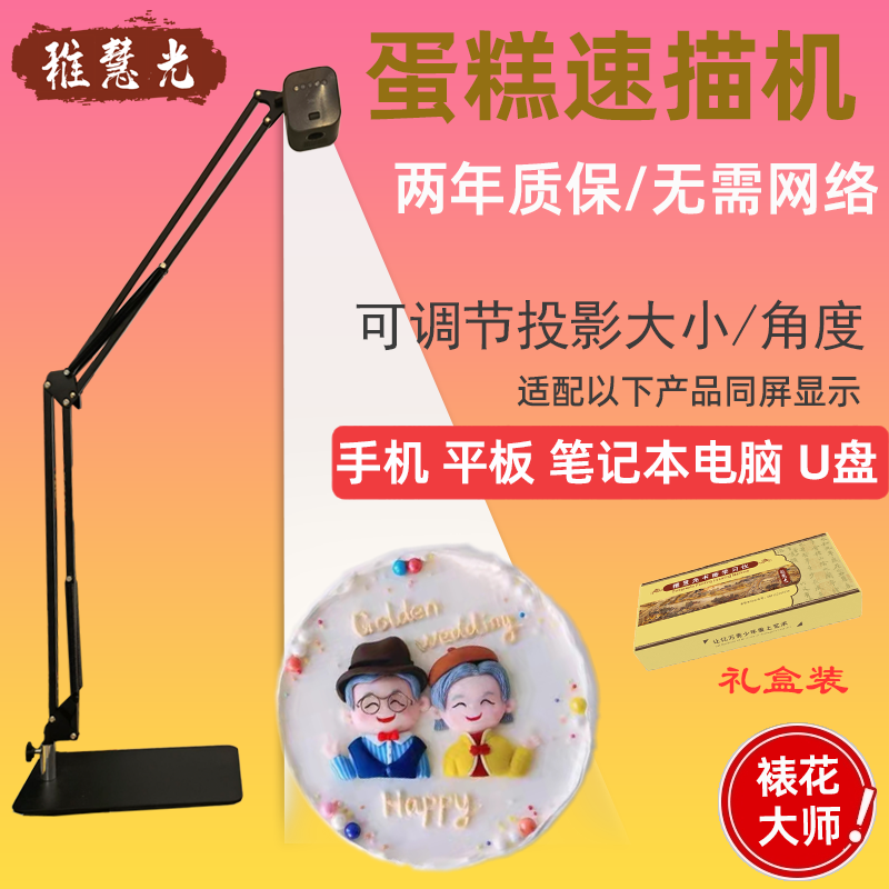 The first generation of the old model with low resolution can not be connected to the mobile phone. The upgraded version with high resolution can be used on the same screen as the mobile phone. The cake projector seat clip bracket accessories do not include the host cake projector.