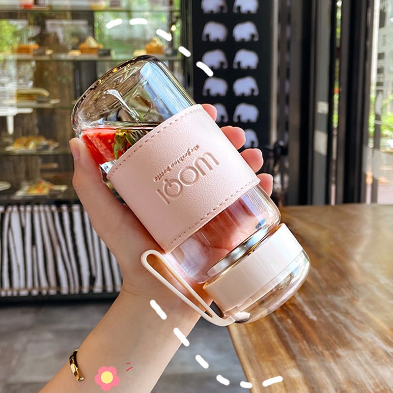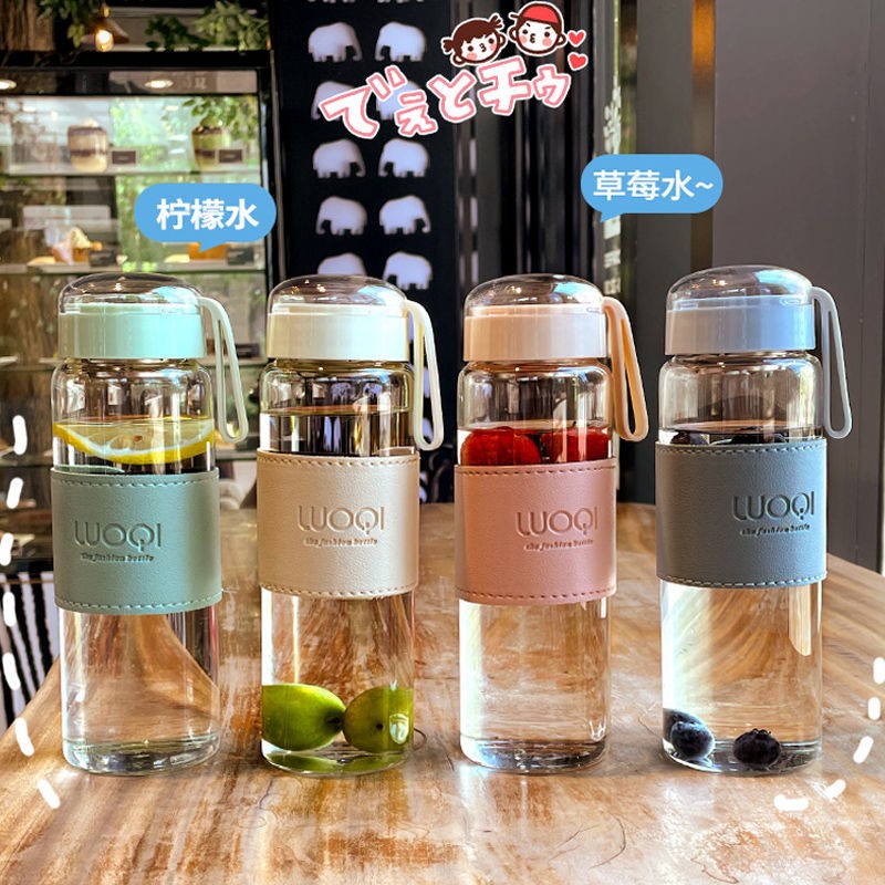Water cup female glass cute student Korean version summer portable heat-resistant transparent tea cup high-value hand-held cup male