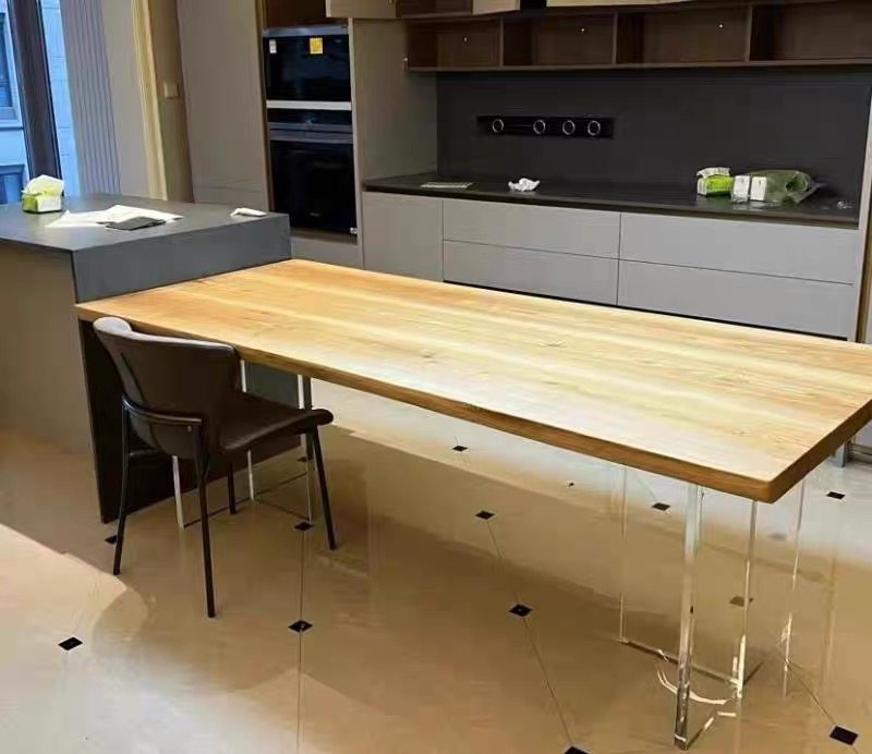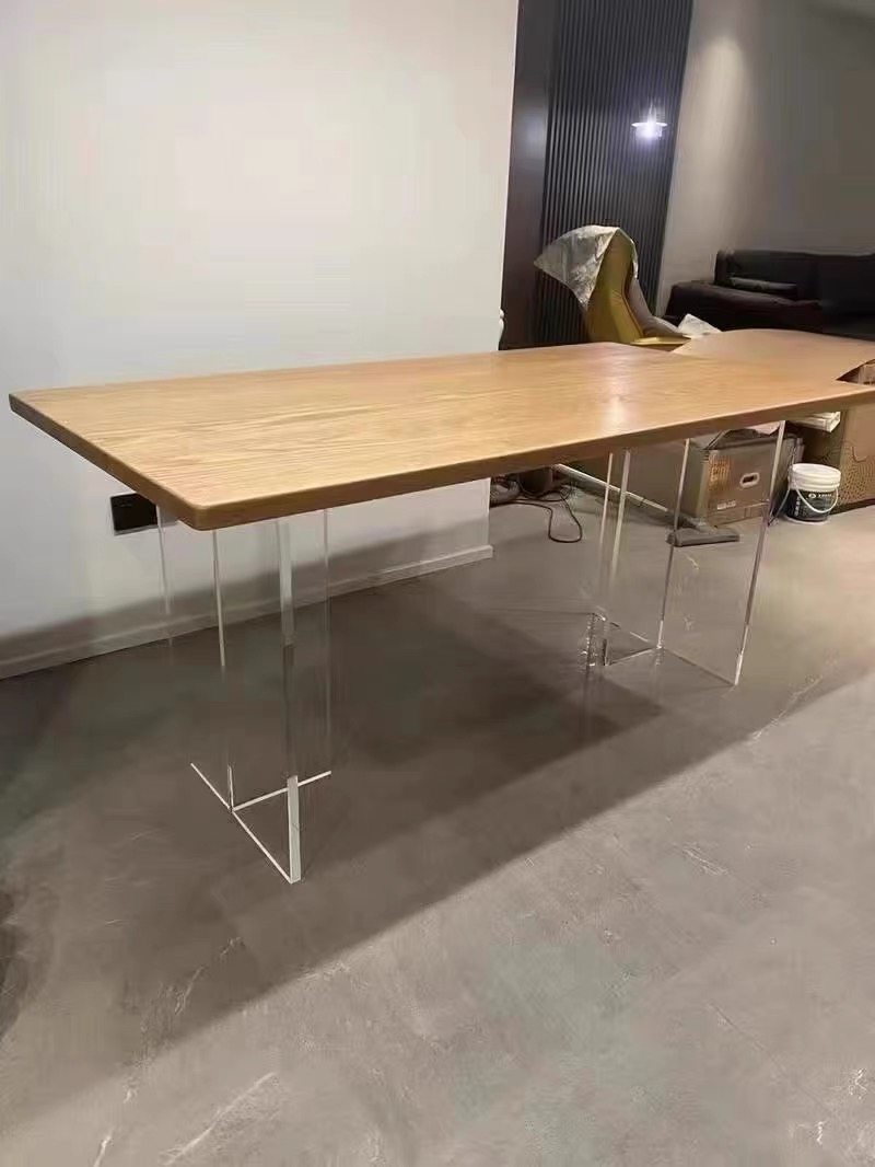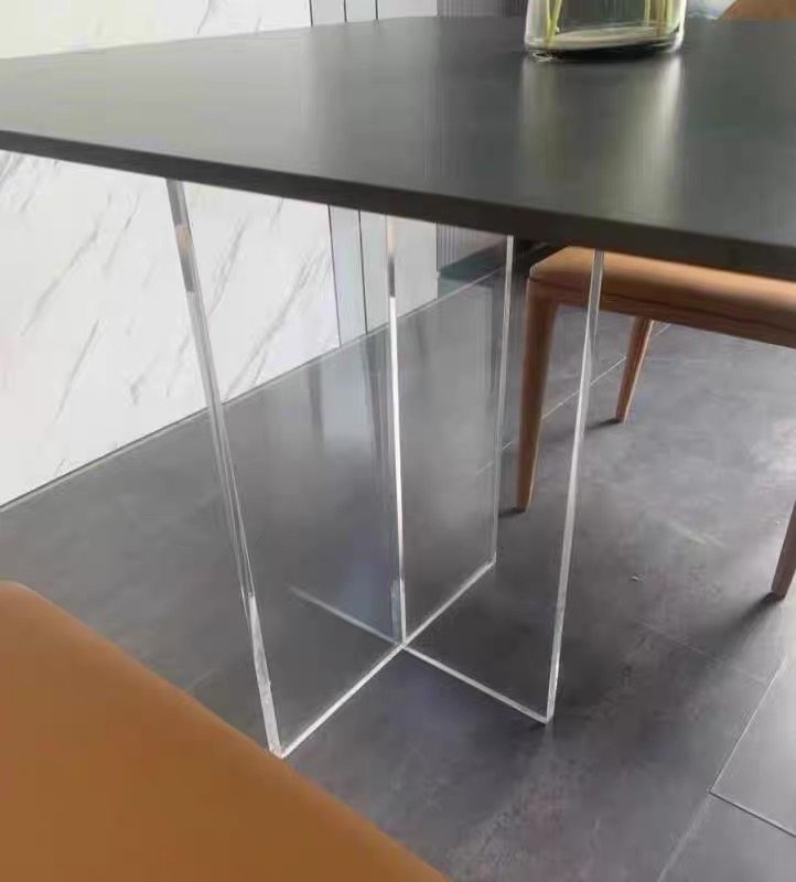 High transparent acrylic table legs plexiglass suspended large plate T-bracket island coffee table desk foot customization