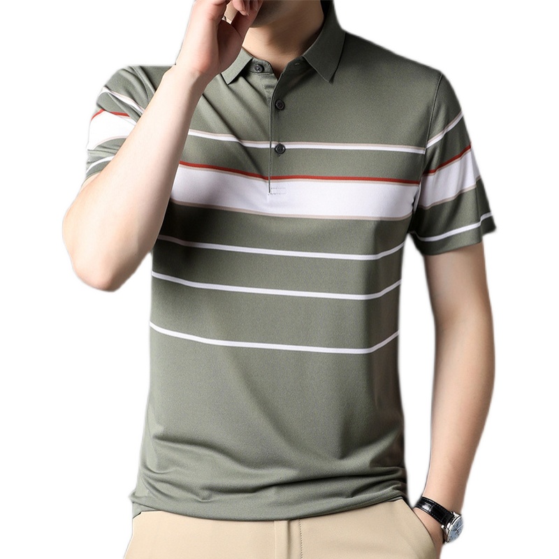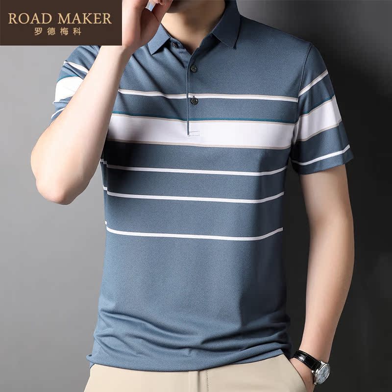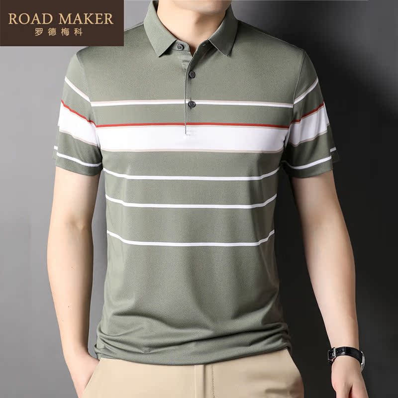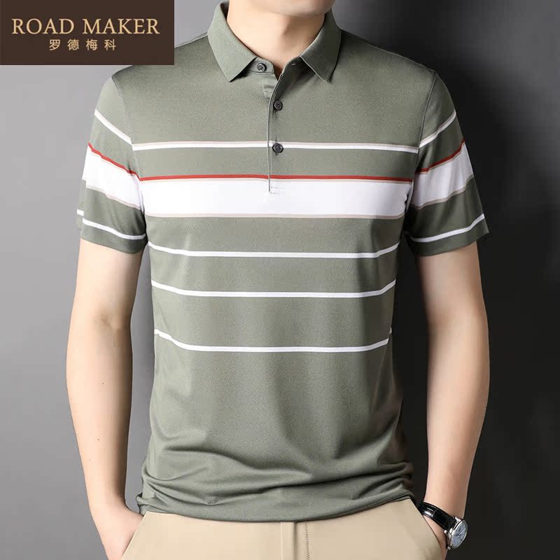 Road Maker 2022 Summer New Slum Silk Short Sleeve Male middle - aged POLO Shirt Strip T - shirt Boy tide