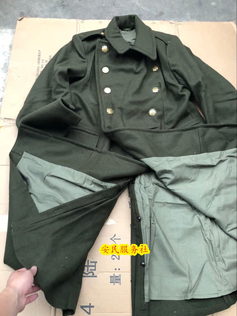 Old-fashioned 87-style yellow woolen coat woolen woolen long winter warm coat army green
