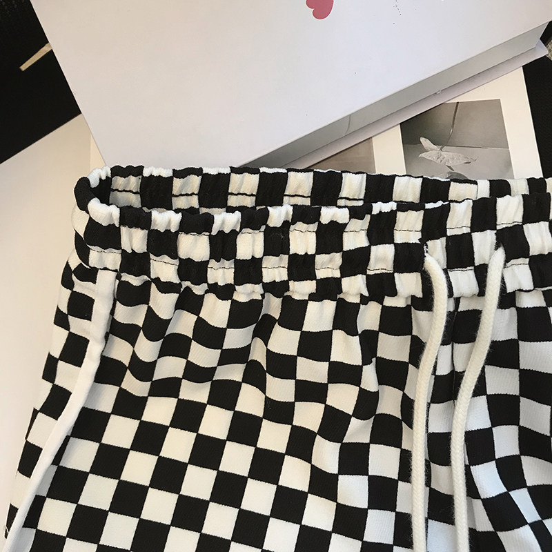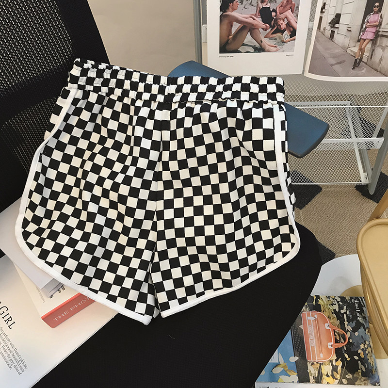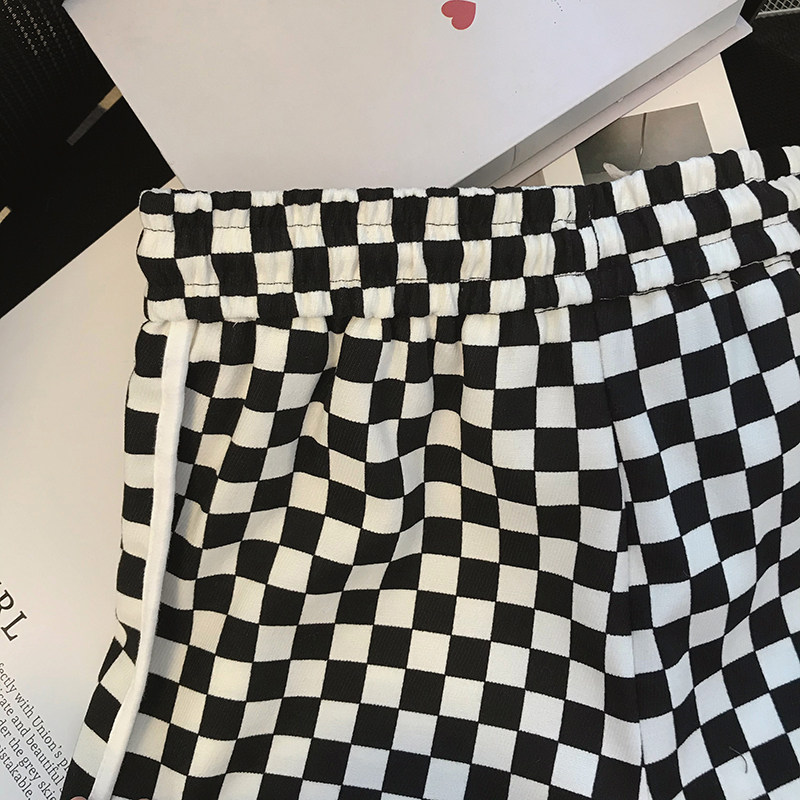 Black and white checkerboard shorts women's 2022 summer new loose outerwear small hot girl sports wide-leg pants