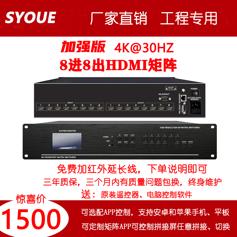 4K60HZ extremely clear hdmi2 0 matrix 8 in 8 out audio and video conference engineering 8 9 12 16 24 splicing screen