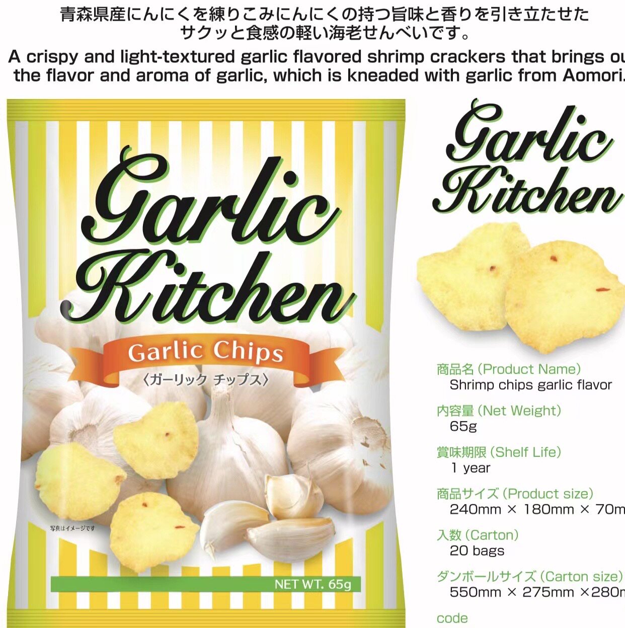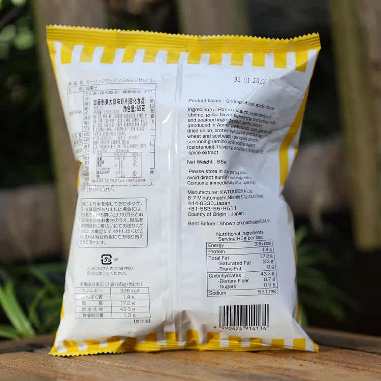 Japanese imported snacks Kato fruit garlic shrimp chips, swelled leisure 65g