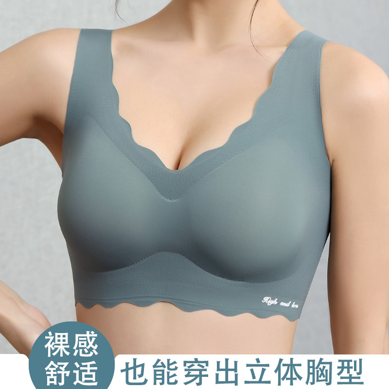 Small waves seamless underwear women's vest-style sports bra without steel ring comfortable gathered bra summer thin section bra