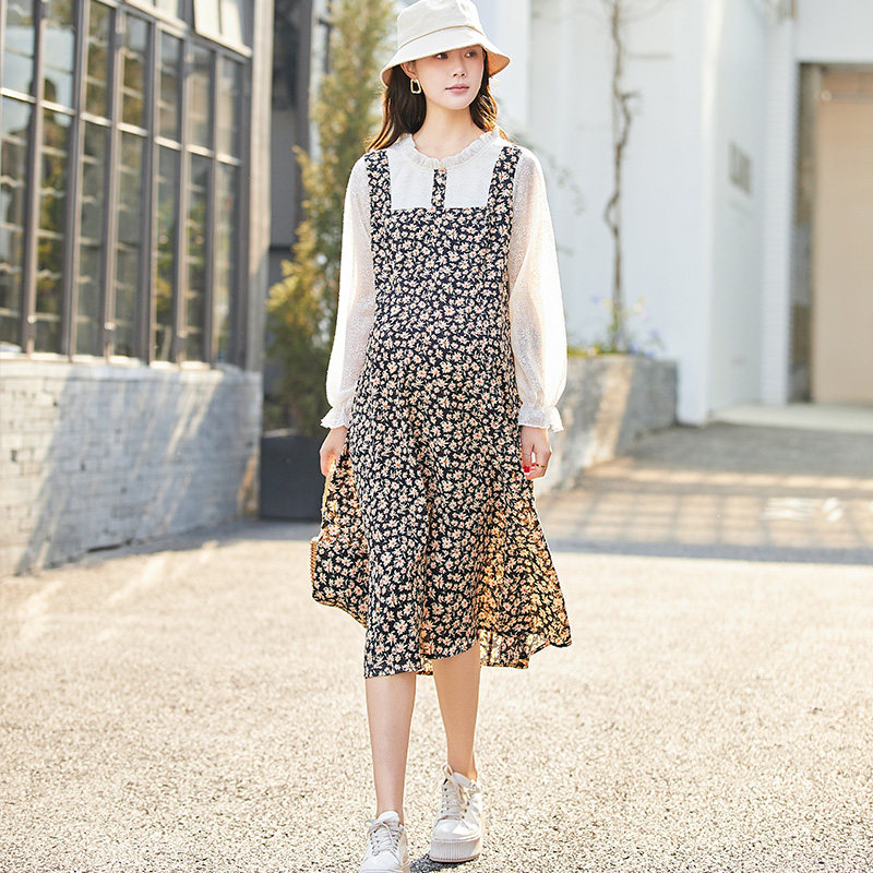 Pregnant women dress 2022 Spring dress new Han color snow spinning noble long sleeve long - sleeve crushing skirt