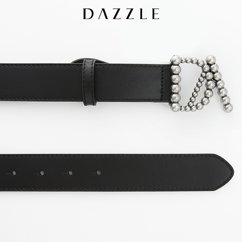 DAZZLE ground vegan new retro letter black genuine leather calf leather belt lady