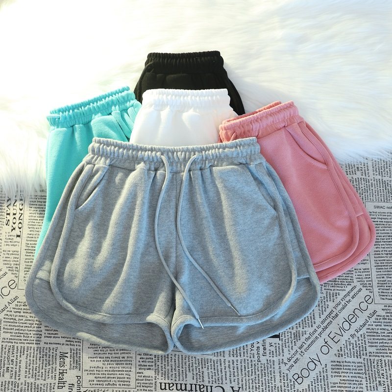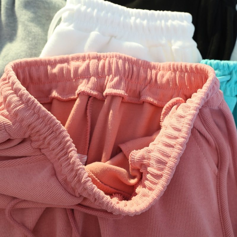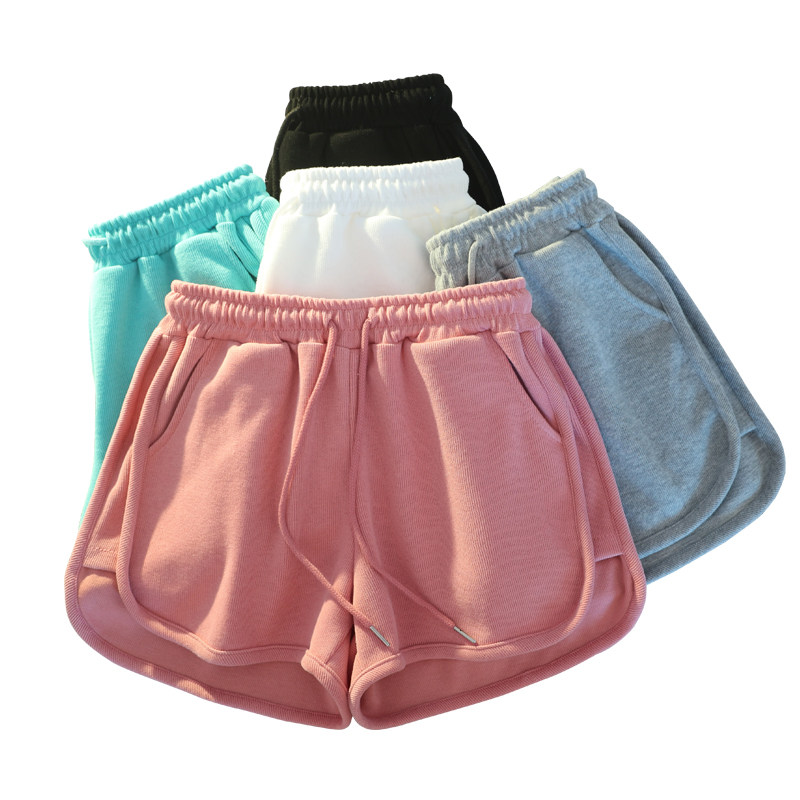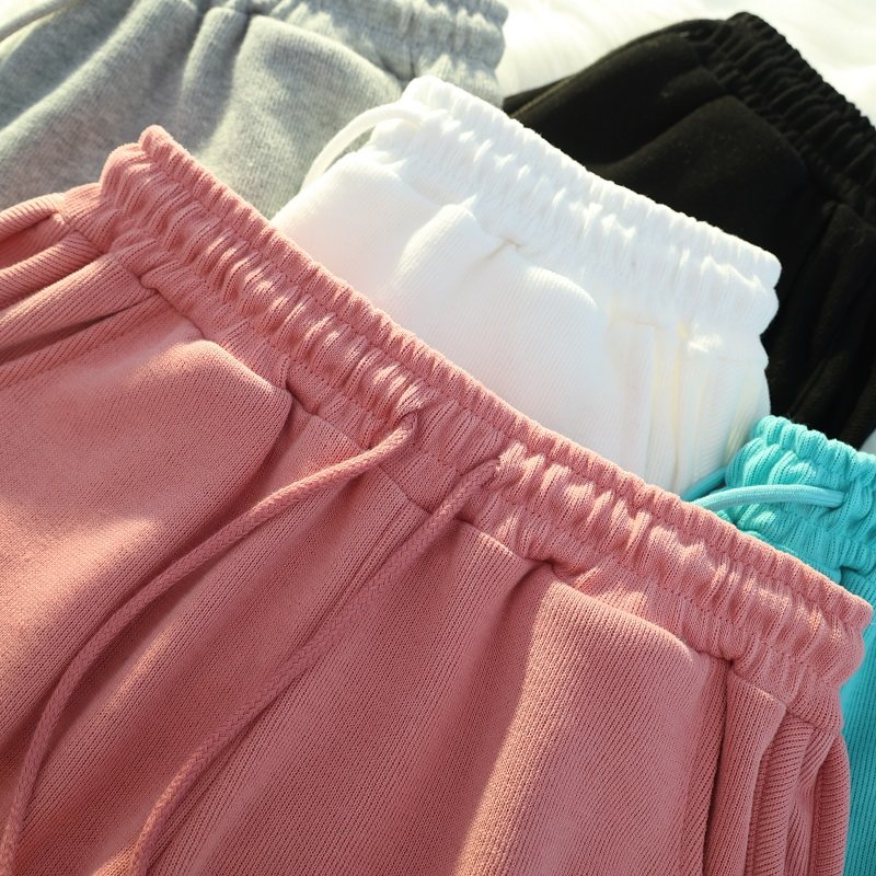 Summer pure cotton white pink casual sports shorts women's summer loose home pajama pants large pocket outside wear running