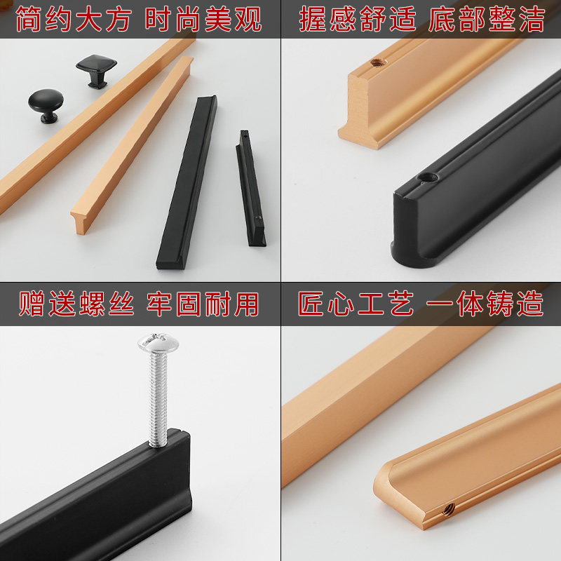Black Lengthened High-end Drawer Cabinet Cabinet Door Handle Modern Minima Gold Light Lavish Strip Integral Cupboard Wardrobe Handle