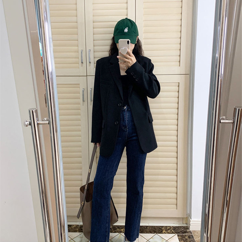 High-quality black suit jacket women's 2022 spring and autumn new Korean version loose retro casual slim small suit