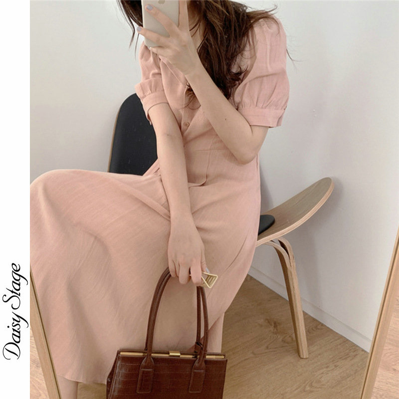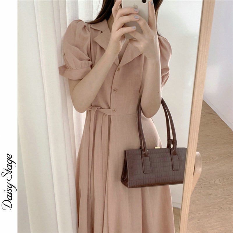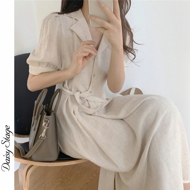 Japanese linen retro Hong Kong style design sense side buckle waist thin temperament texture high-end professional dress women