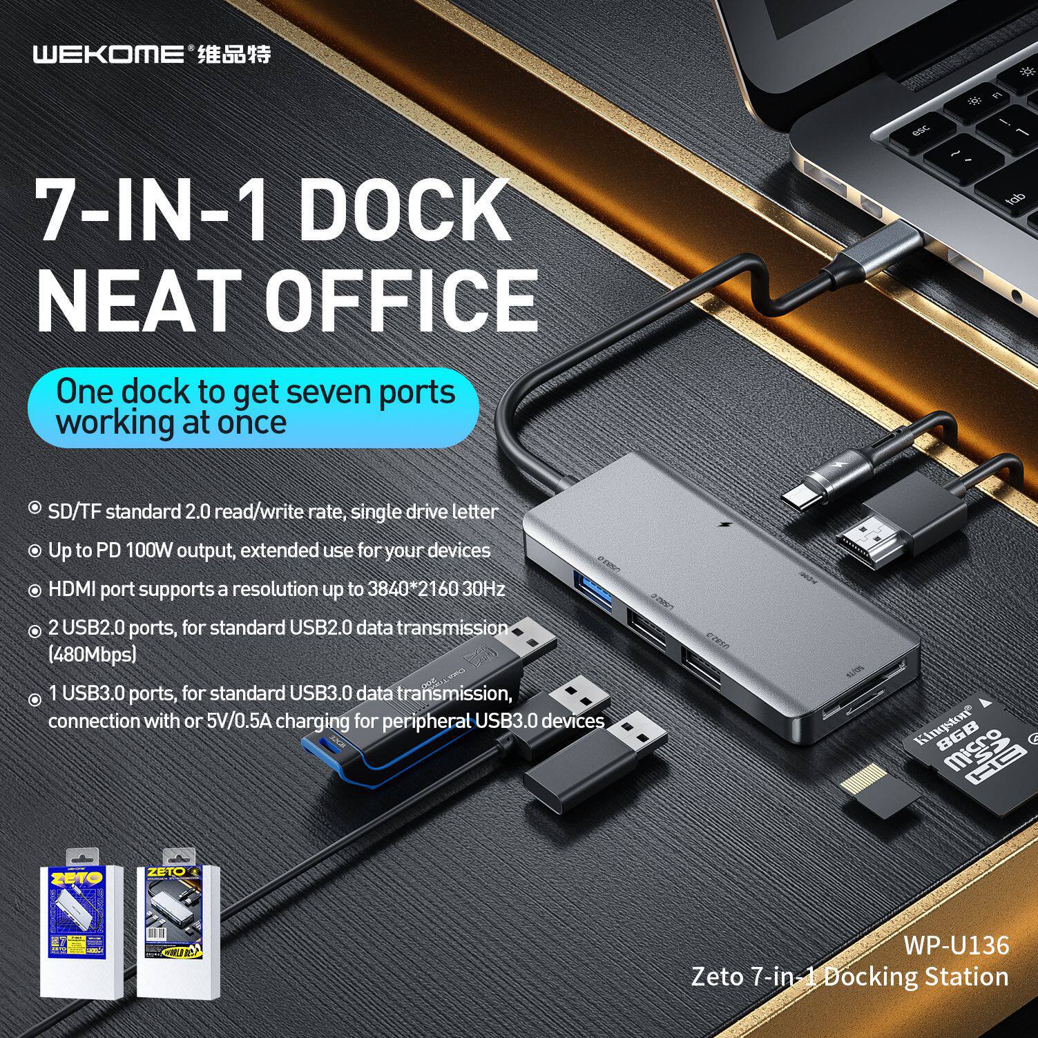 WK seven-in-one expansion dock USB30 splitter typec100W notebook hub suitable for iPad Pro