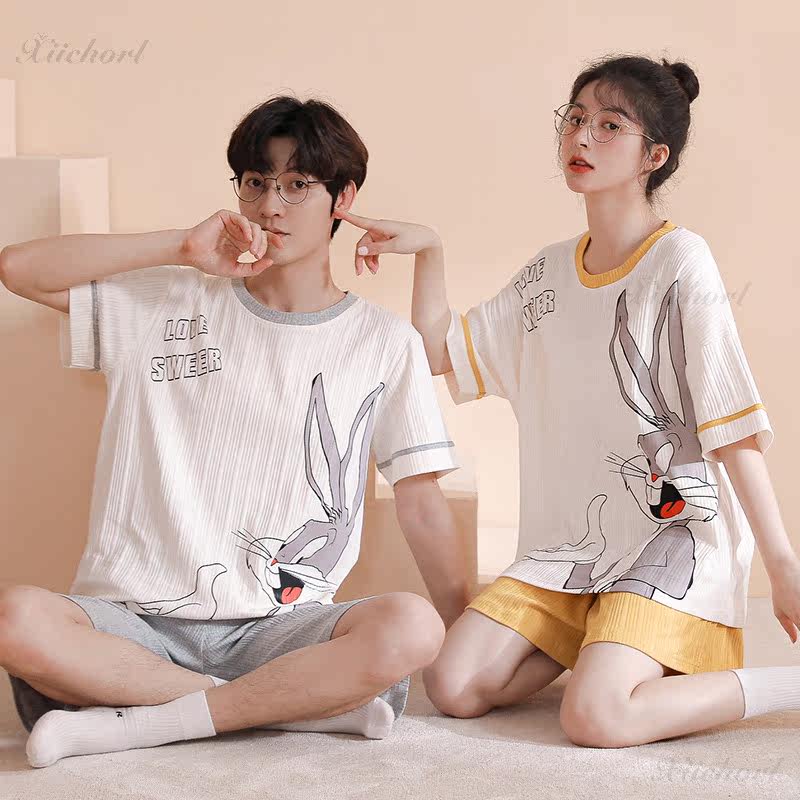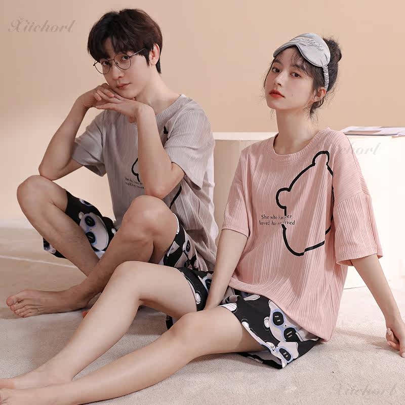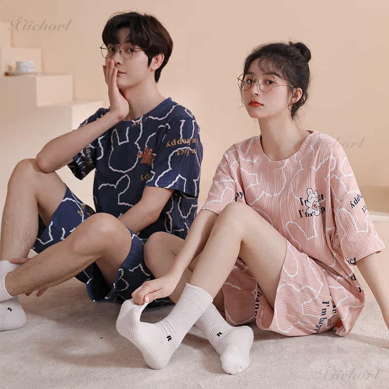 2022 New spring summer short sleeve lovers sleepwear female Doraemon A dream pure cotton set head home conserved two style suits