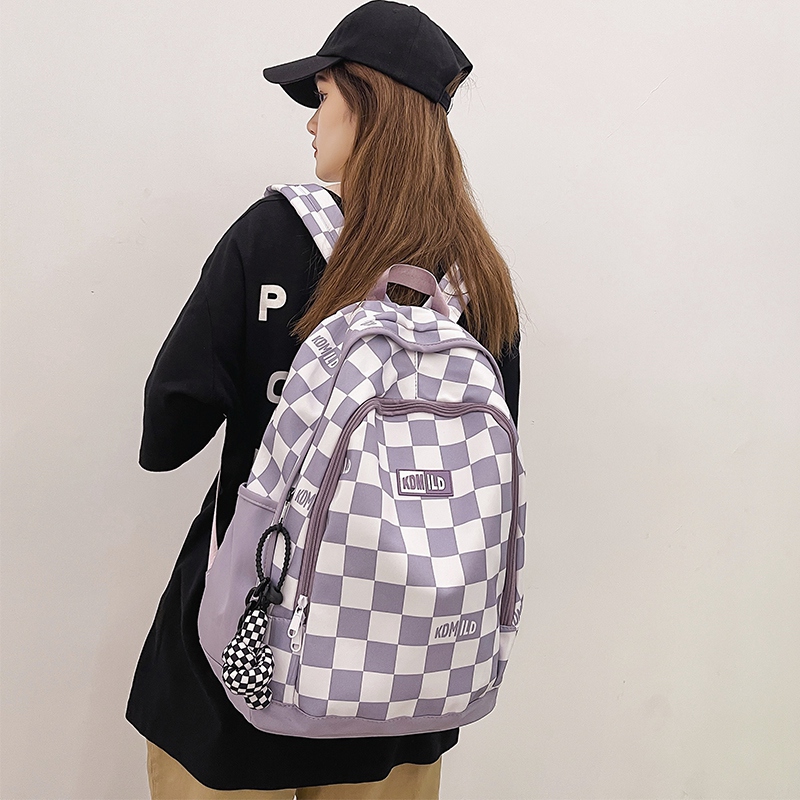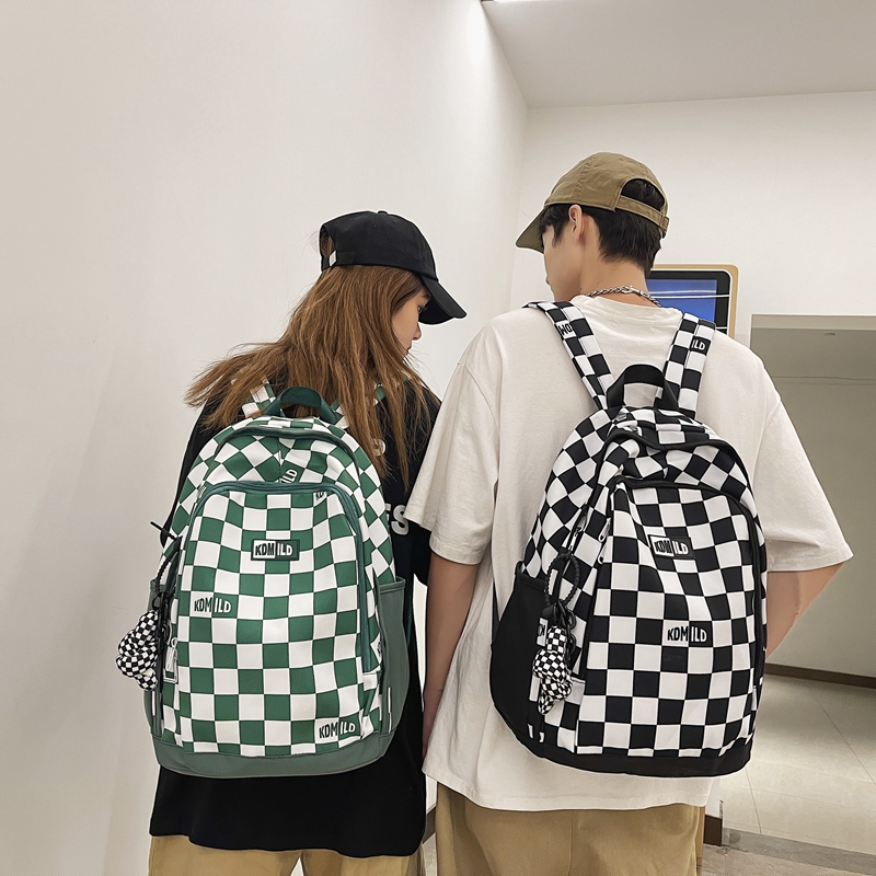 OUMANTU new schoolbag men and women couples shoulder bag junior high school college students fashion backpack plaid large capacity