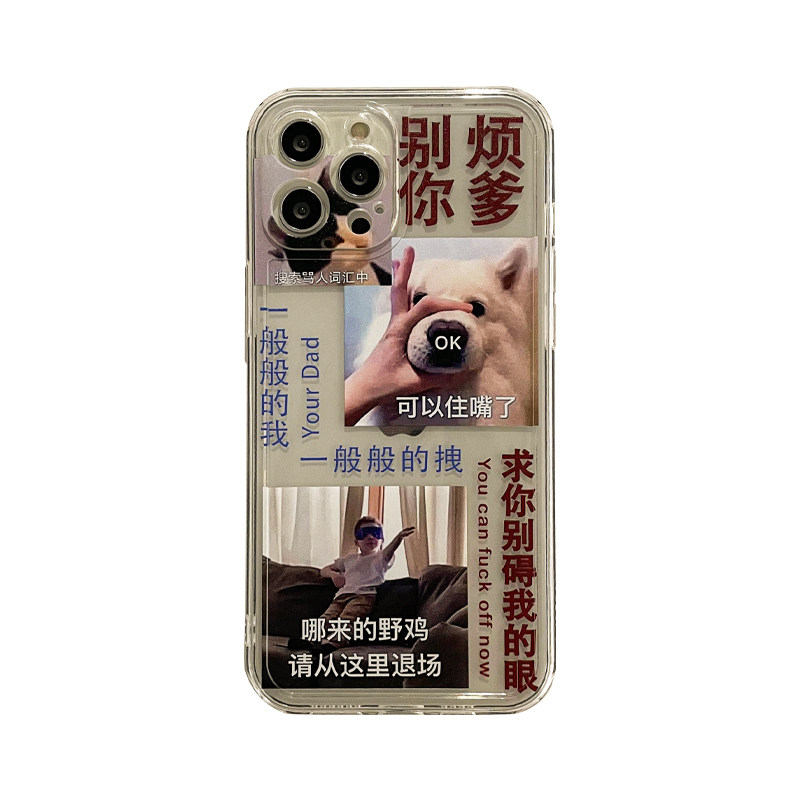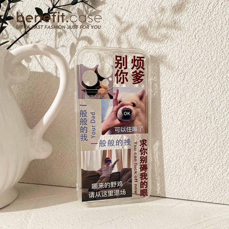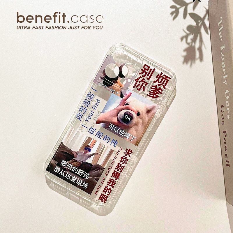 Benefit creative spoofed trouble your father to apply Apple 13 promax mobile phone protection shell iPhone 12 transparent mini personality xsmax fucking xr text 8