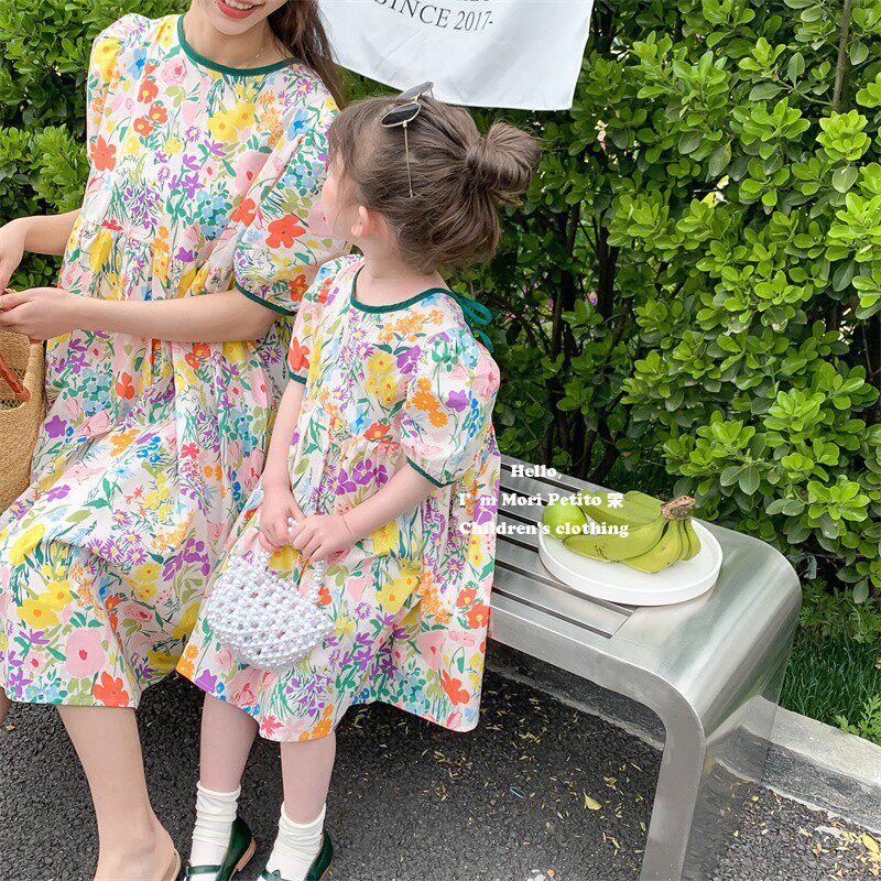 Mother - child dress Yang baby cotton cloth with beautiful backbone - style Han - Edition girl crushing dress 2023 summer