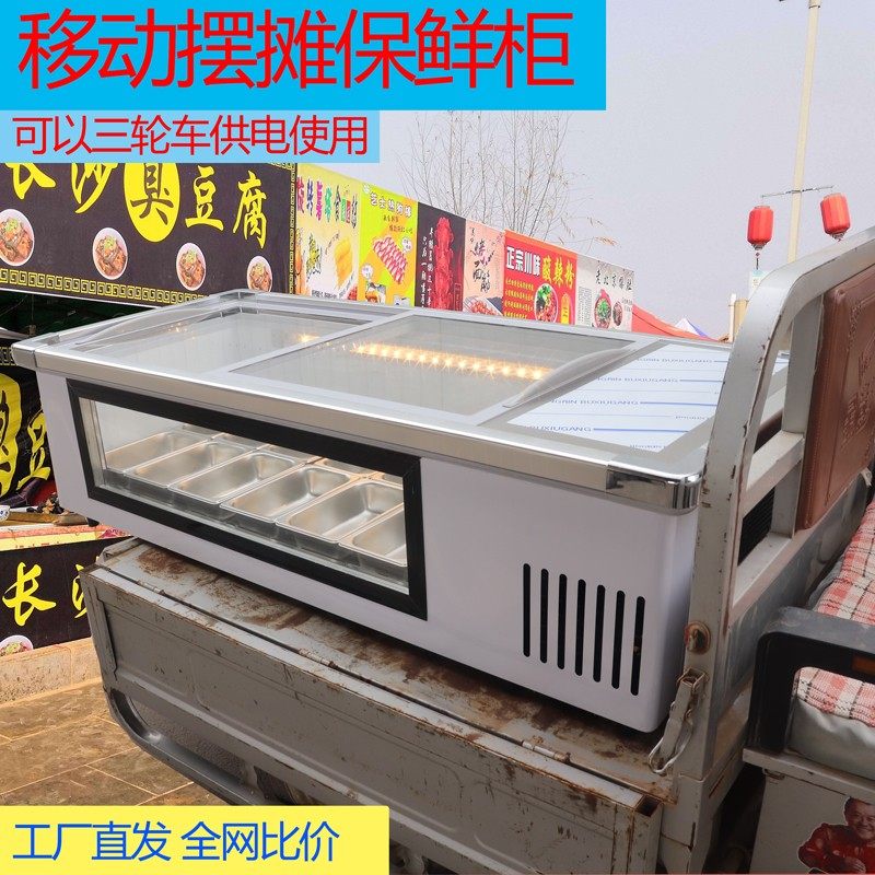 Three-wheeler stall table cabinet table cooked food duck neck barbecue string of cold dishes halogen vegetables straight cold refrigerated frozen display case