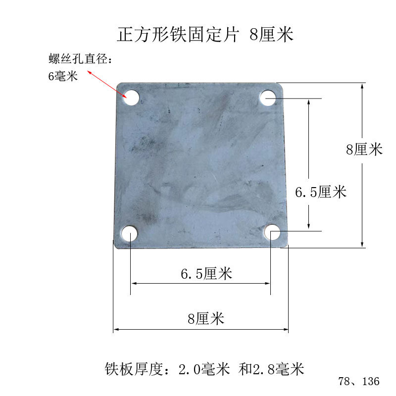 8 cm square plate iron sheet with 4 screw holes diameter 6 mm iron bracket fixed base plate 8 cm thickened