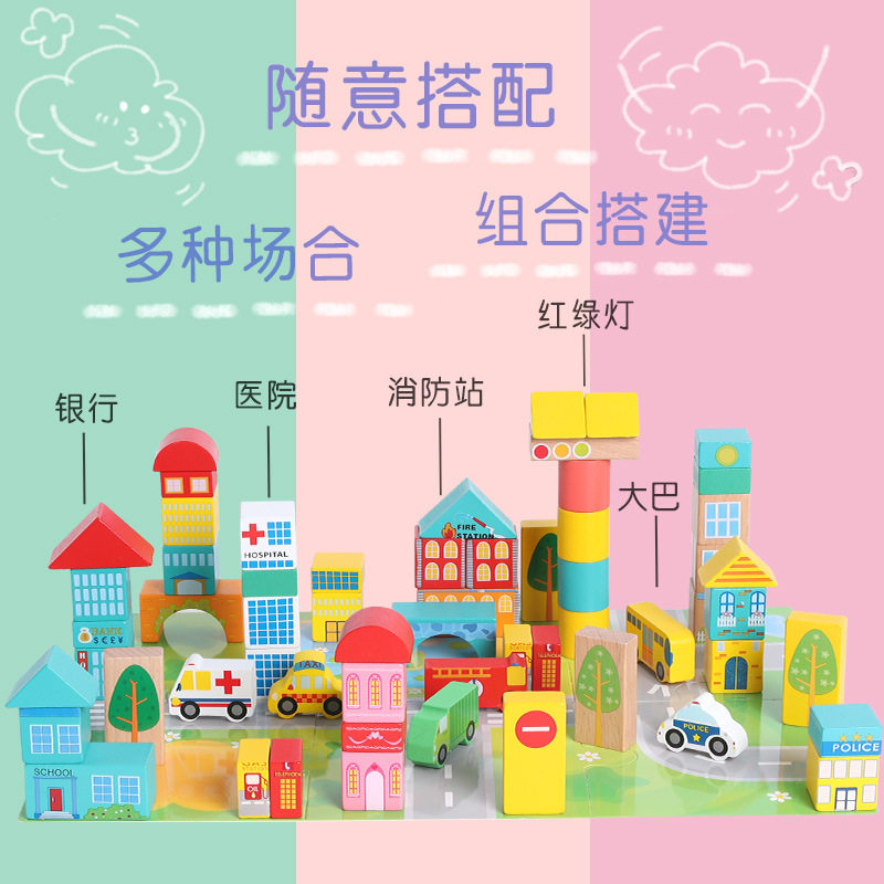 Onshine Wooden Puzzle Force Children large pieces Toys 62 Grain Barrelled Urban Traffic Scene Building Blocks