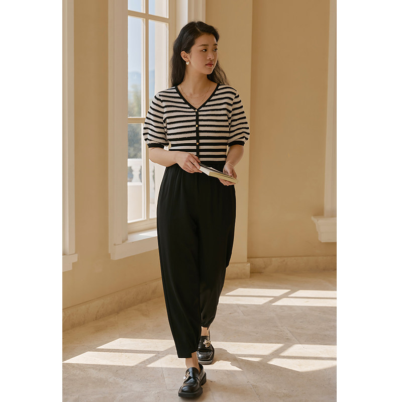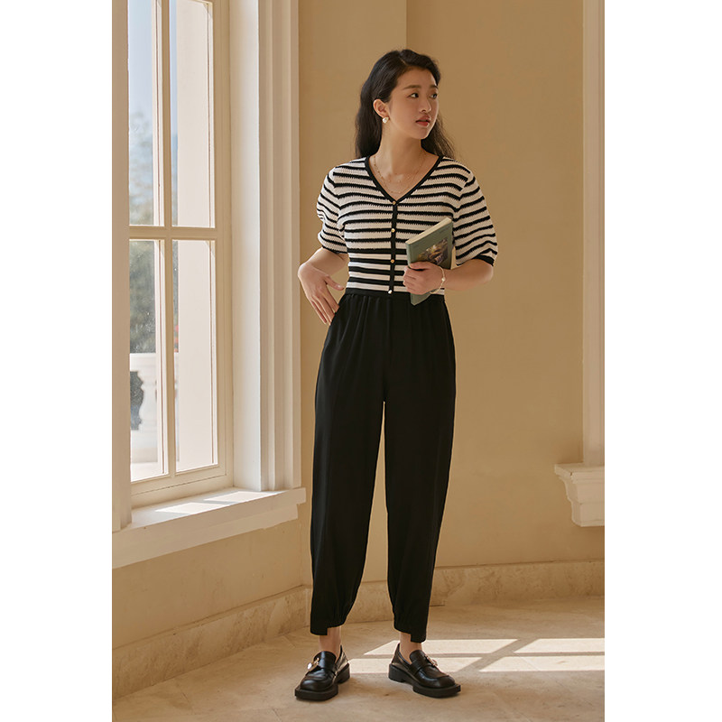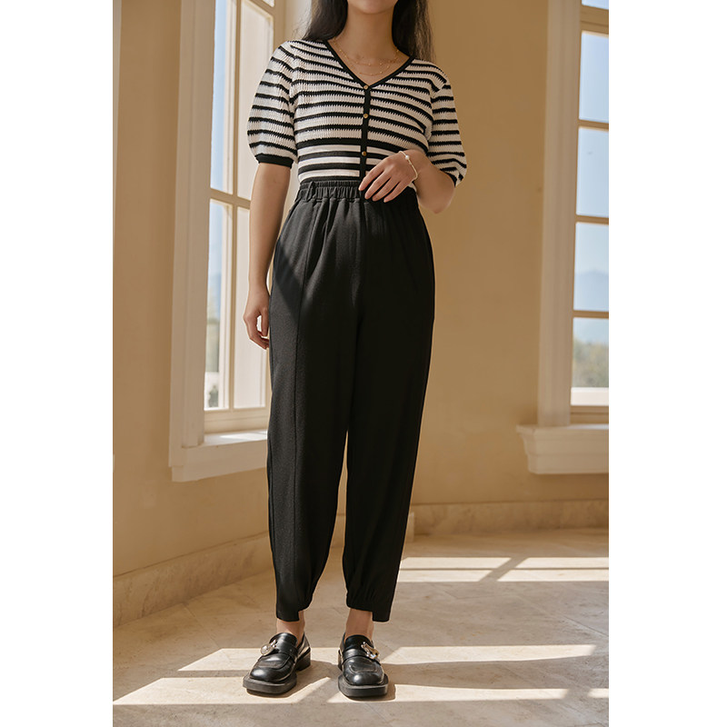 Solo bouquet with large size female clothing elastic bunches casual pants 2022 Summer new fat MM loose 100 hitch black long pants