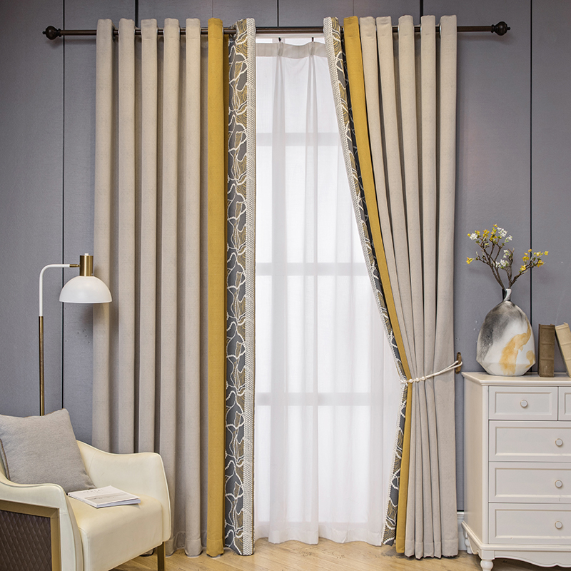 Curtain bedroom 2021 new modern wabi-sabi style living room bedroom milk tea color chenille seamless splicing curtain