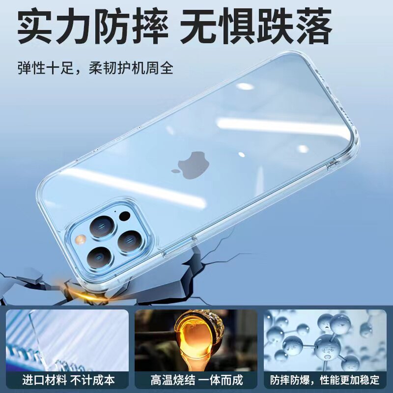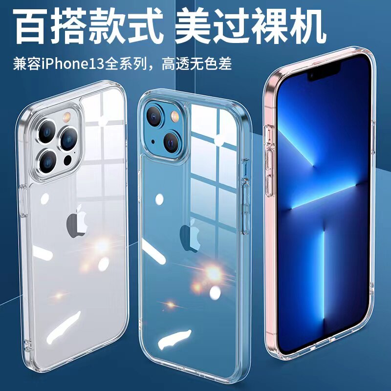 Ice crystal fully transparent applicable Apple 13 mobile phone protection shell iPhone 13ProMax high-transparent anti-drop 12 new all-pack protective suit Max silicone 13pm female por housing male