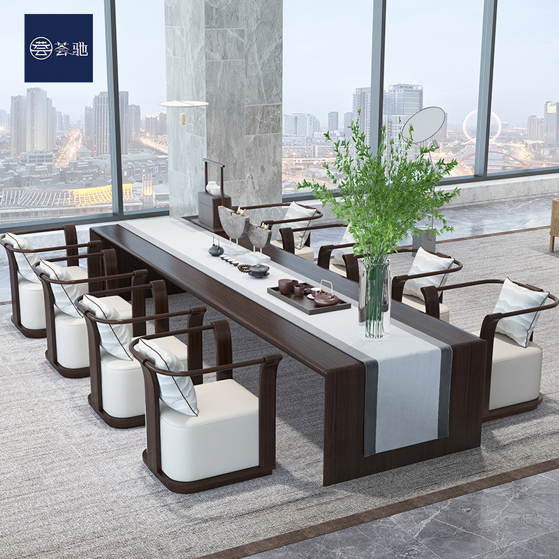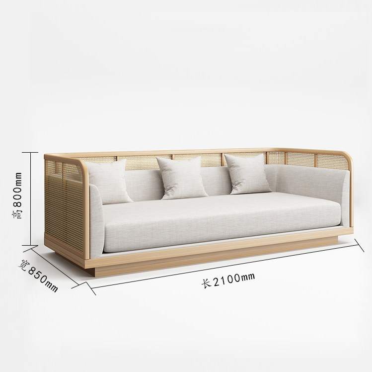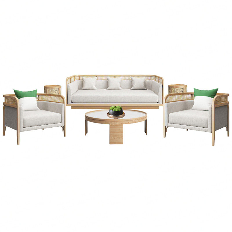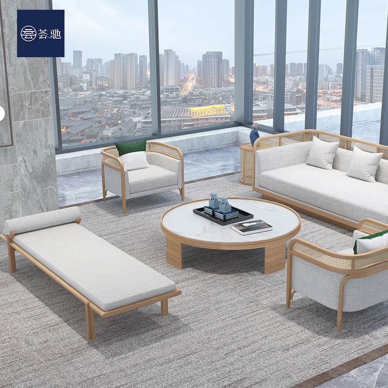 Sales Office Chinese Simple Solid Wood Rattan Card Seat Hotel B&B Reception Area Negotiation Sofa Combination Zen Furniture