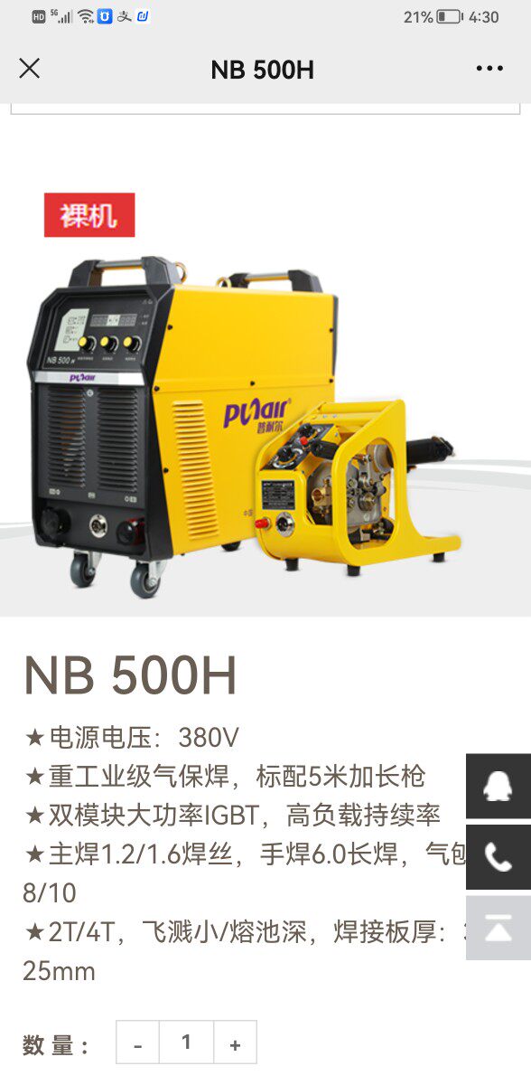 Purnell carbon dioxide gas protection welding machine 350 500 two-piece industrial two-guarantee manual welding dual-use 380V