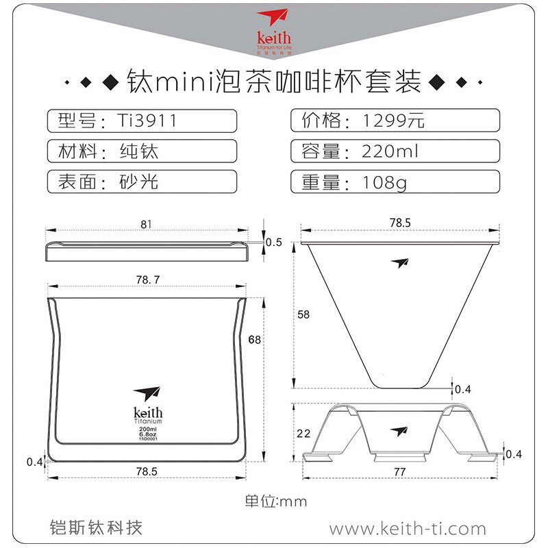 Keith Kaisi pure titanium coffee cup filter cup drip filter funnel hand brew coffee pot outdoor Ti3911