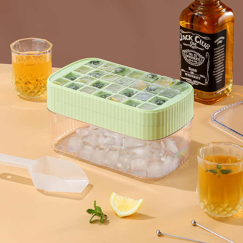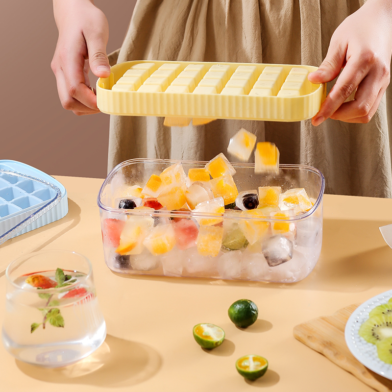 Striped ice cube mold with lid silicone household multi-grid ice box ice box artifact soft glue ice ball storage ice box