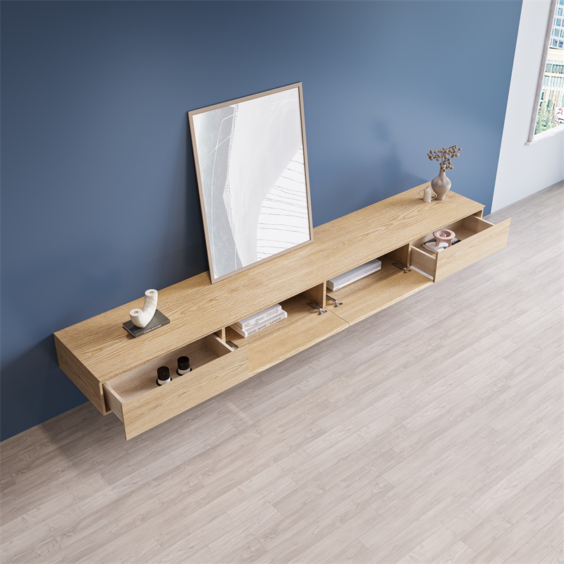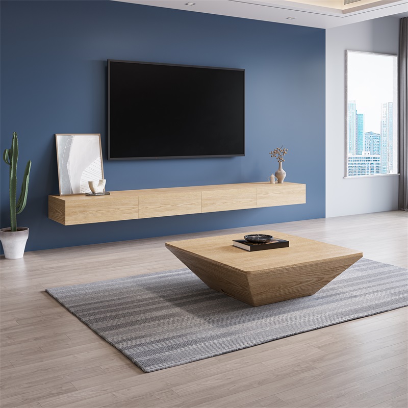 Log color hanging TV cabinet coffee table combination modern minimalist living room home wall hanging cabinet can be customized