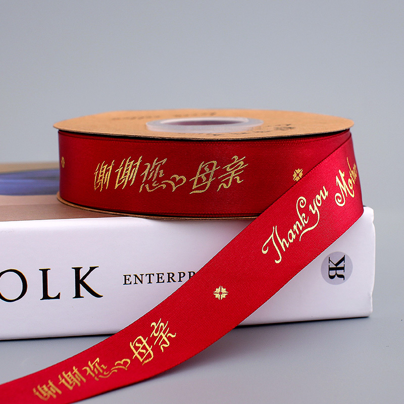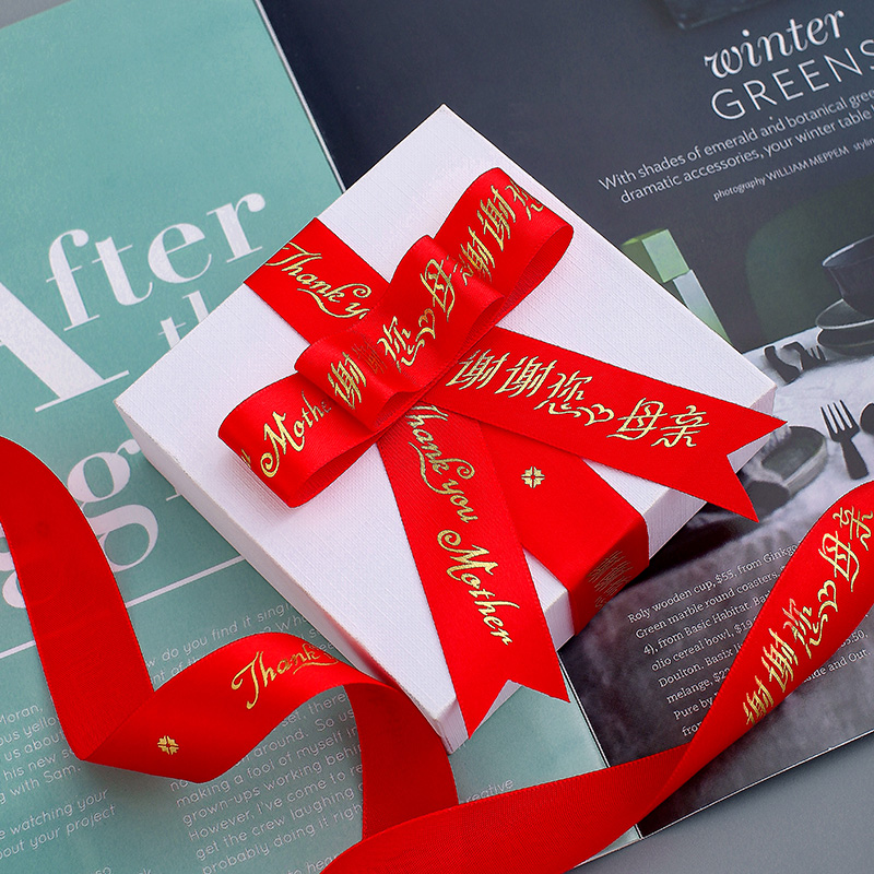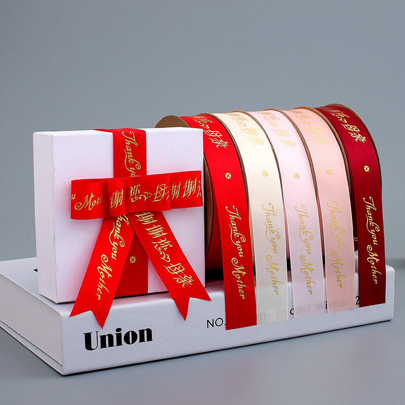 Bronzing Silk with flowers bouquet packaging satin ribbon color with delivery Mother's birthday gift box webbing floral strap material
