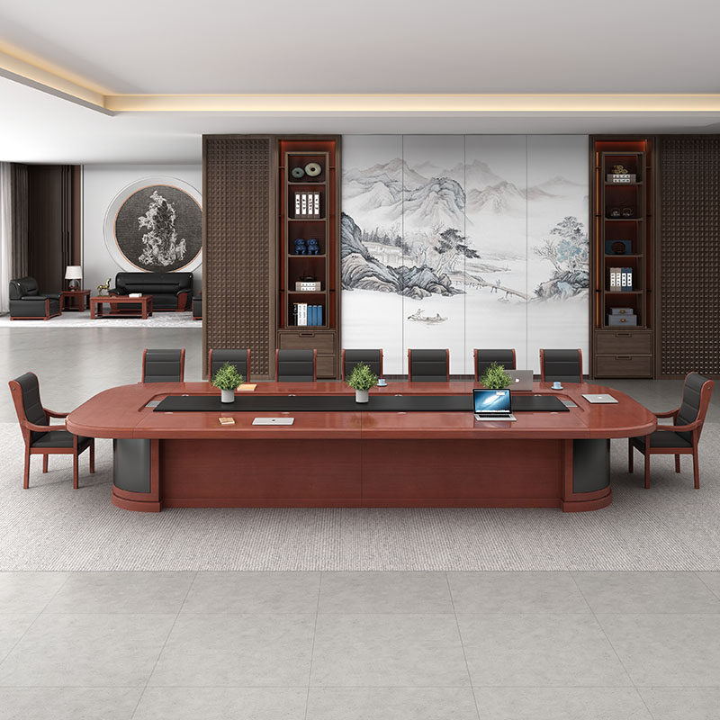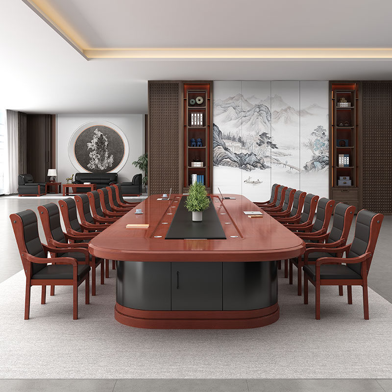 Paint Solid Wood Leather Meeting Table Meeting Room Negotiation Table Oval Multiperson Meeting Table And Chairs Combined Spot Customizable-Taobao