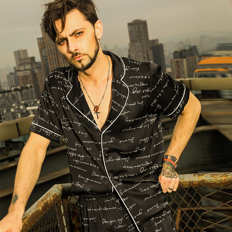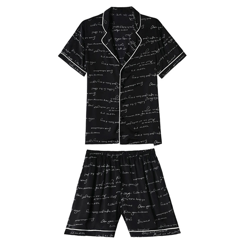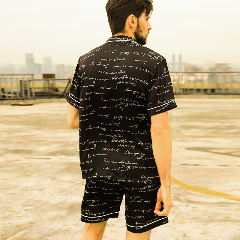 Men's sleepwear Summer Ice Silk 2021 New thin letter printed short sleeve shorts can be worn outside the home suit suit