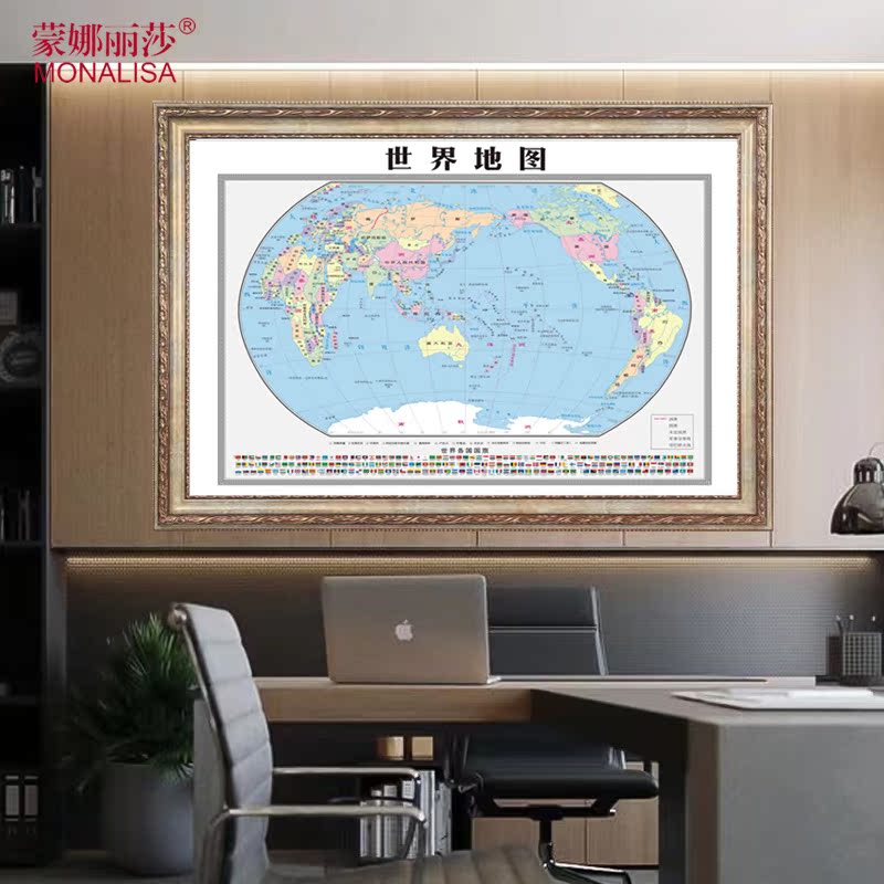 Carved Flowers Gold Large Border Map Decoration Painting World Map China Map Custom Size Picture Office Hang Paintings