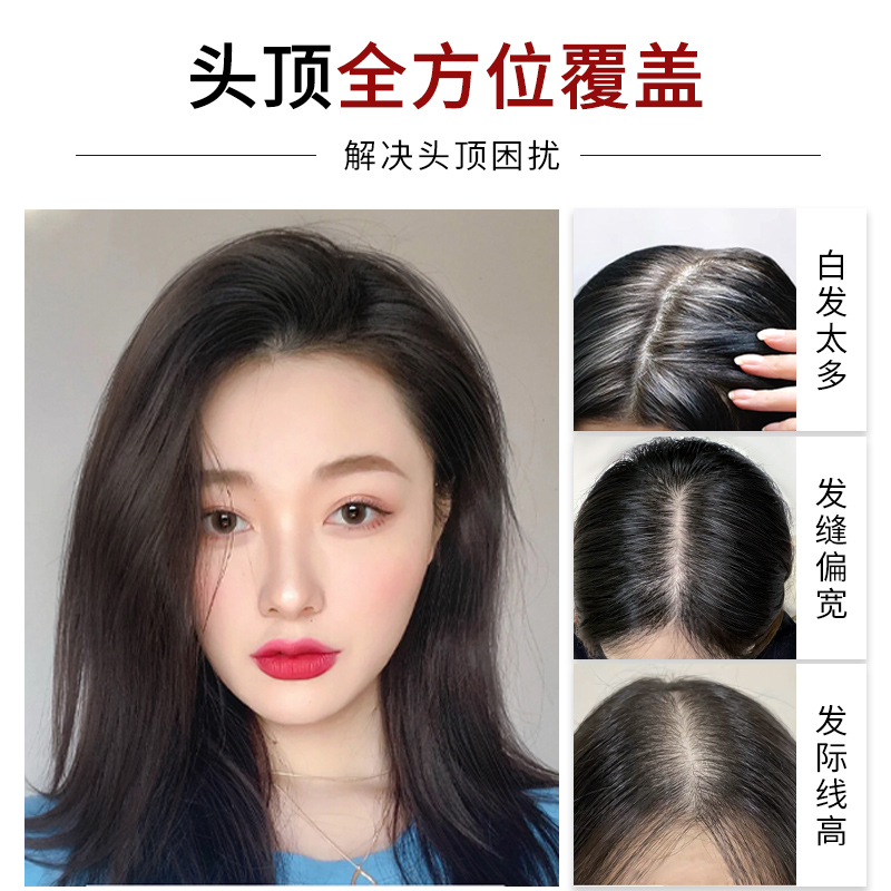 Wig Women's Head Top Summer True Hair Shade White Hair Light Hair Natural Fluffy Weight Gain Forehead Cover Bald Top Patch Hair