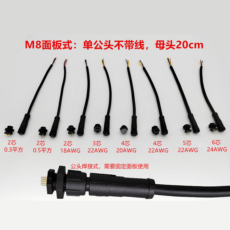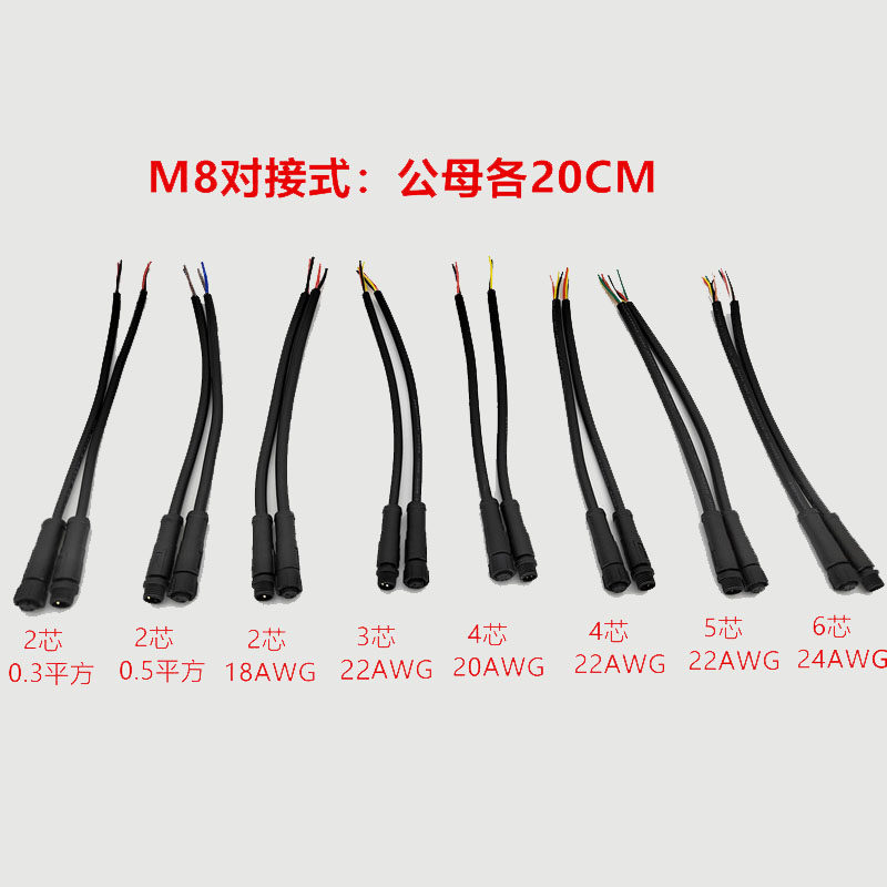 2 cores 0.3 square male and female each 20cm M8 docking type 2 cores 0.5 square male and female each 20cm M8 docking type 2 cores 18AWG male and female each 20cm
