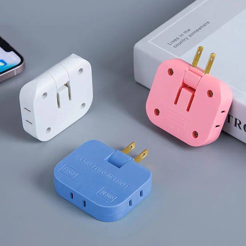 Mini 2-foot plug converter 180-degree rotating seat two holes with usb charging one-to-three wireless expansion plugboard